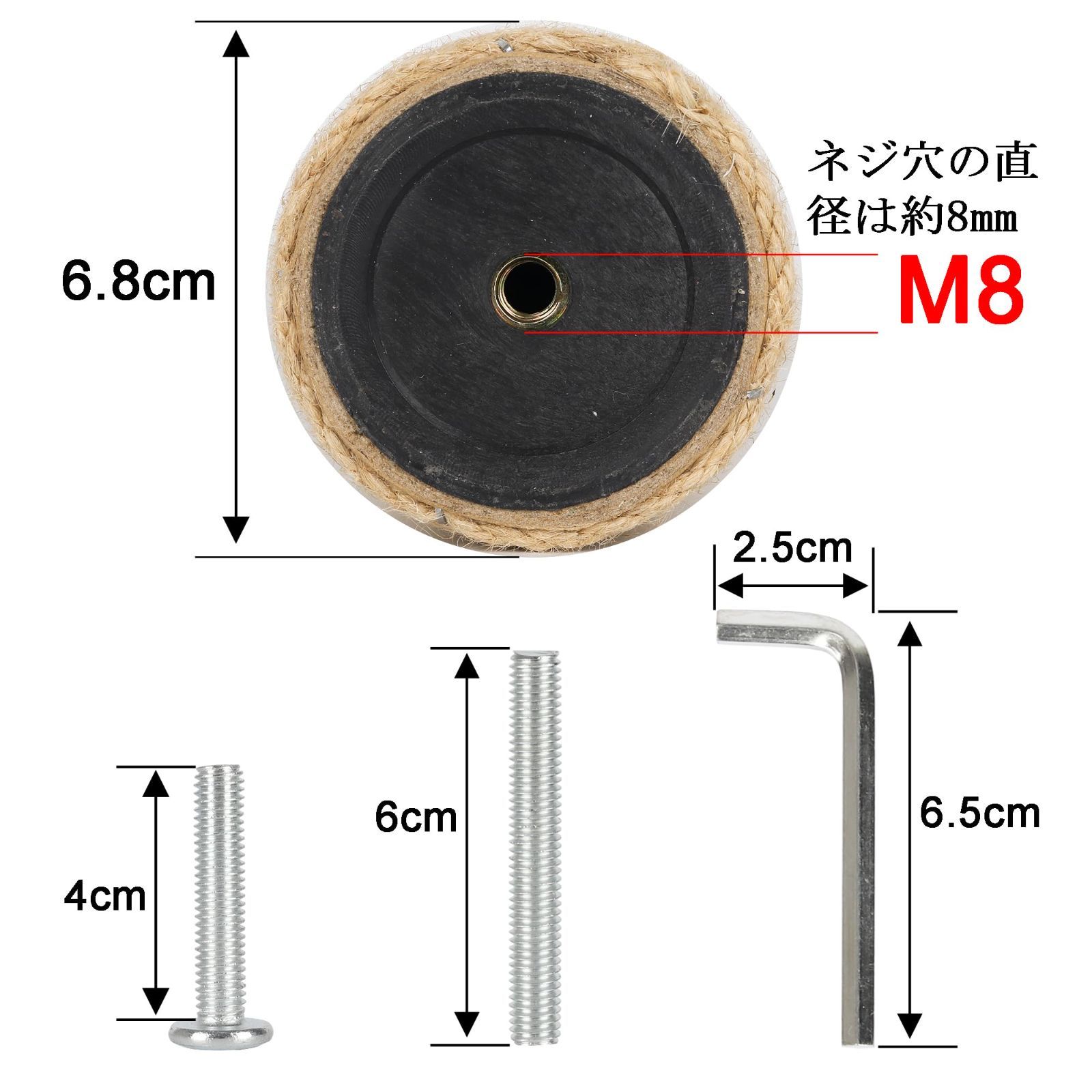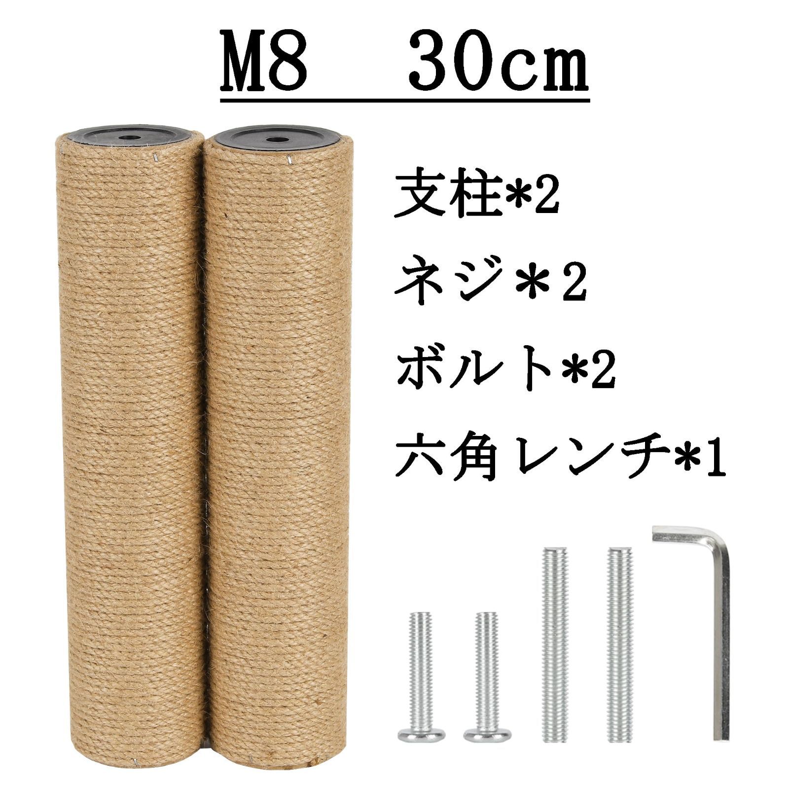 直径6.8cm キャットタワー 交換 支柱 猫 爪研ぎ 交換用 ポール 麻縄 (30cm*2本 M8)