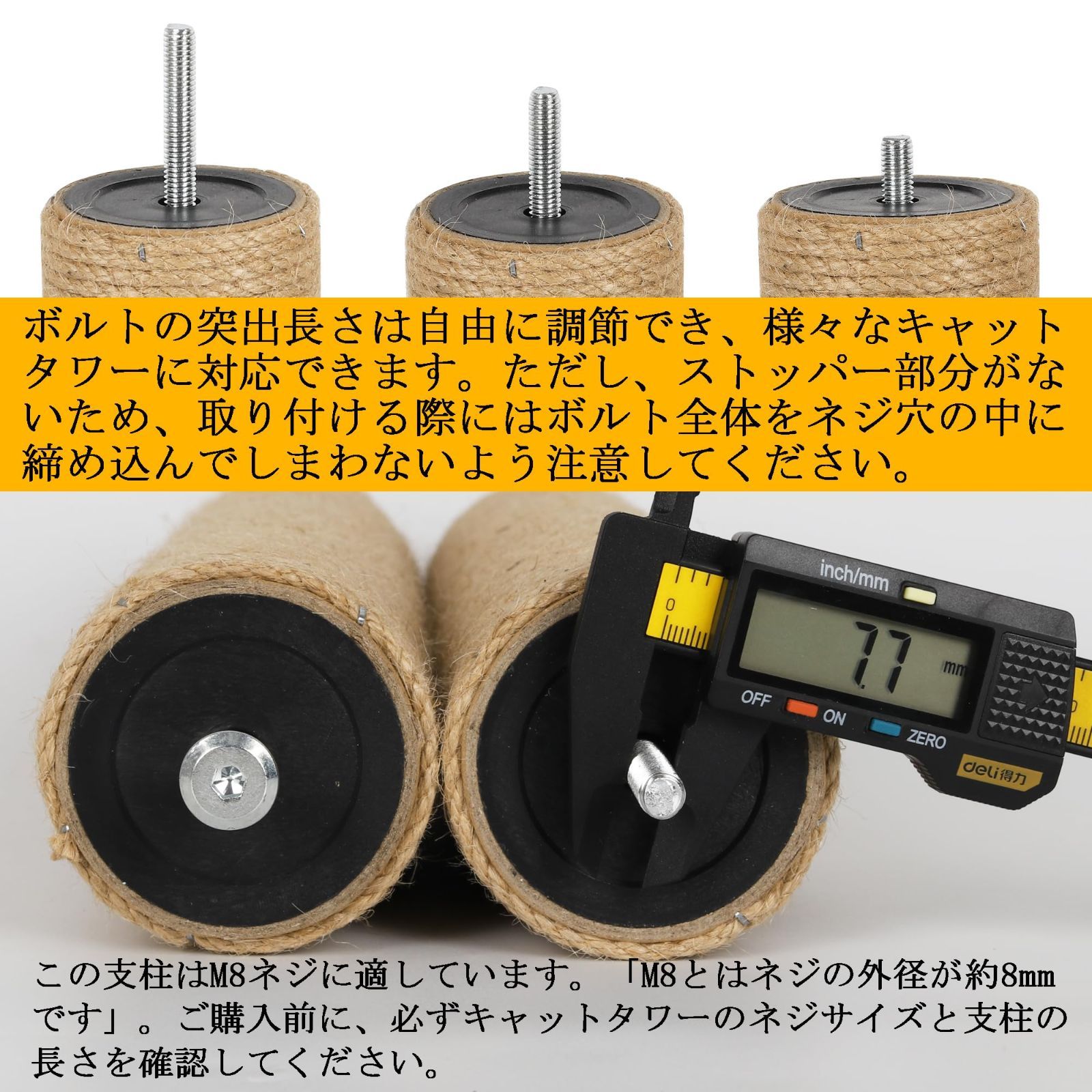 サイズ仕様: 直径6.8cmの麻縄ポール2本セット。キャットタワーの修理や交換に最適なサイズです