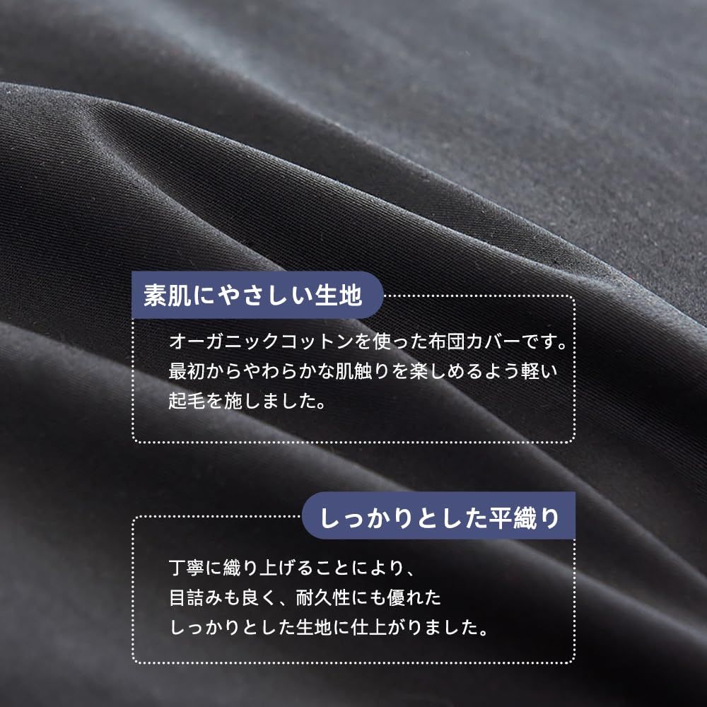 掛け布団カバー (単品) カラー:ブラック サイズ:シングル(150×210cm)■素材:綿100%のブロード生地。良質な綿を丁寧に織り上げることにより、肌ざわりのやさしい生地に仕上がりました。目詰みも良く、耐久性にも優れたしっかりとした生地です。柄映りも少なく、普段使いとして人気のあるクラスになります。
