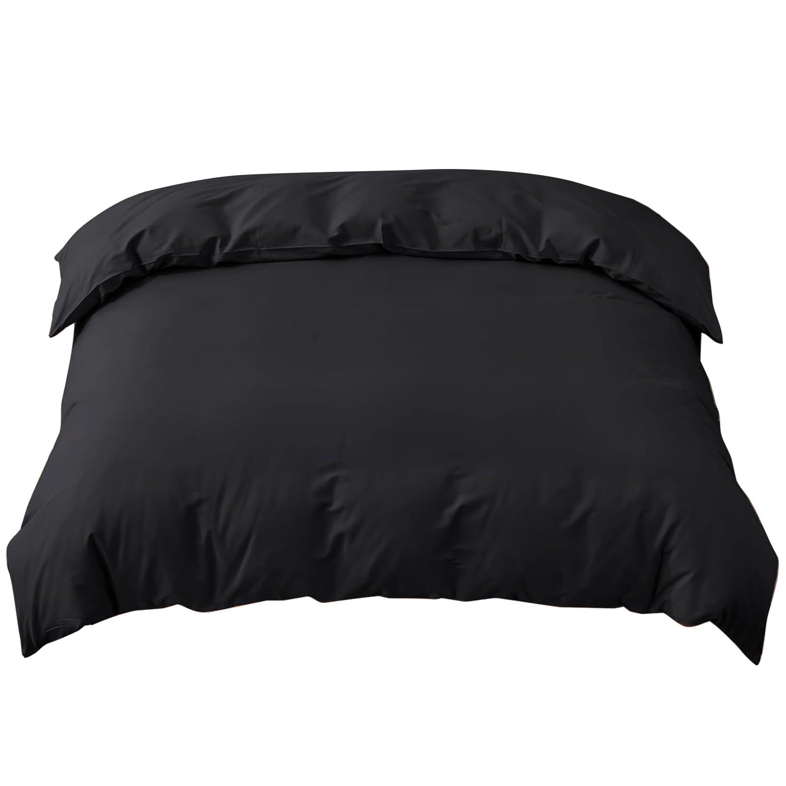 掛け布団カバー 布団カバー 綿100% ふとんカバー 洗える 抗菌防臭 防ダニ オールシーズン ピーチスキン加工 全開ファスナー 通気 速乾 単品 (通年タイプ・ブラック, シングル・150X210cm)