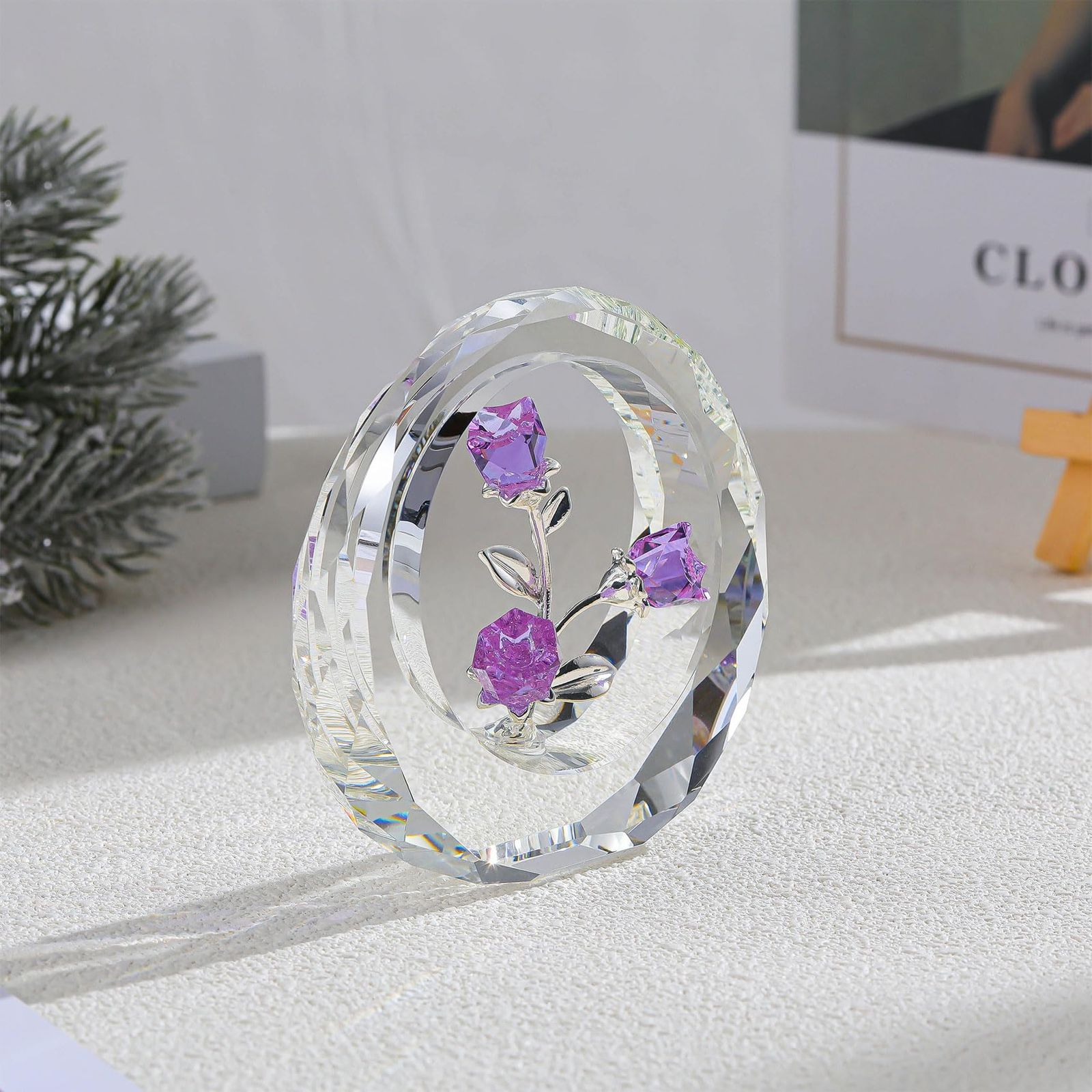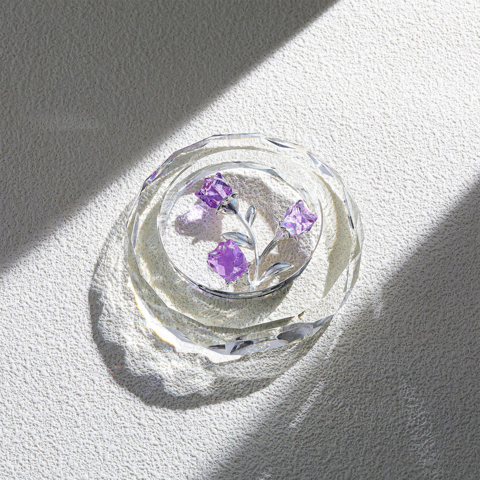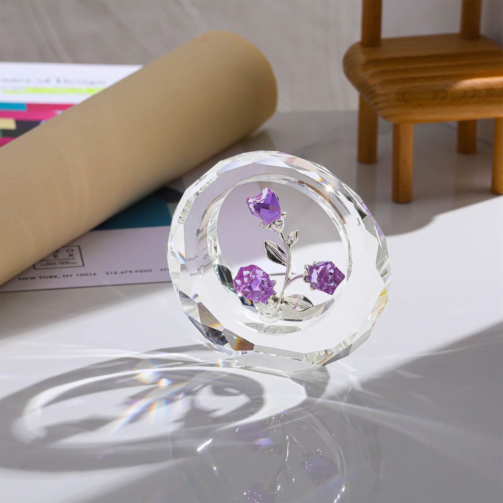 クリスタル紫 ローズ 誕生日プレゼント 女性 人気 K9クリスタルいバラギフト バラの花束 薔薇 置物 結婚記念日プレゼント 結婚祝い バレンタインデー 彼女 妻 母への贈り物 枯れない花(パープル)