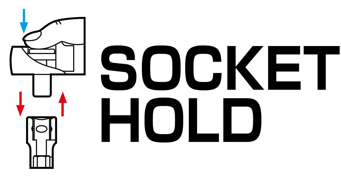 ソケットの着脱が容易で、作業時には外れにくいソケットホールド機構付。