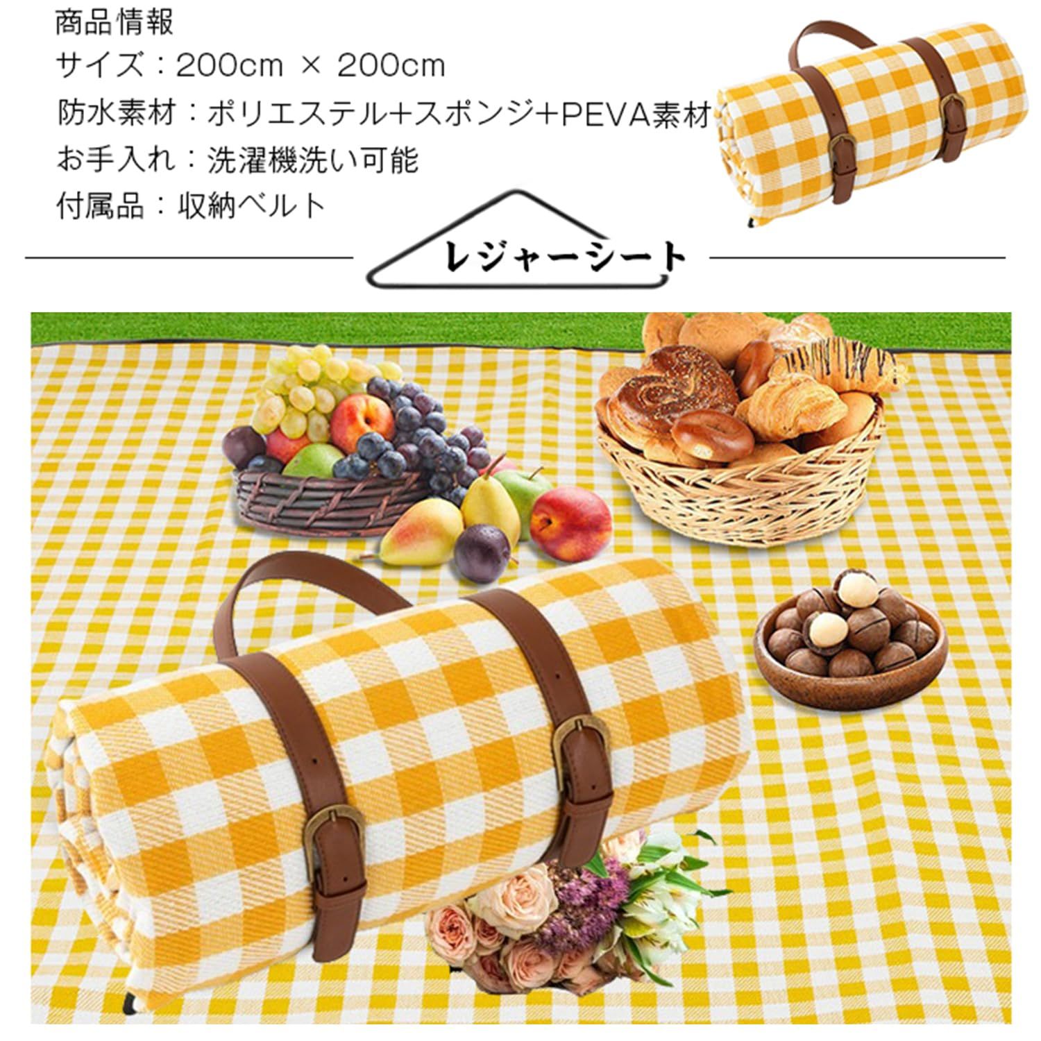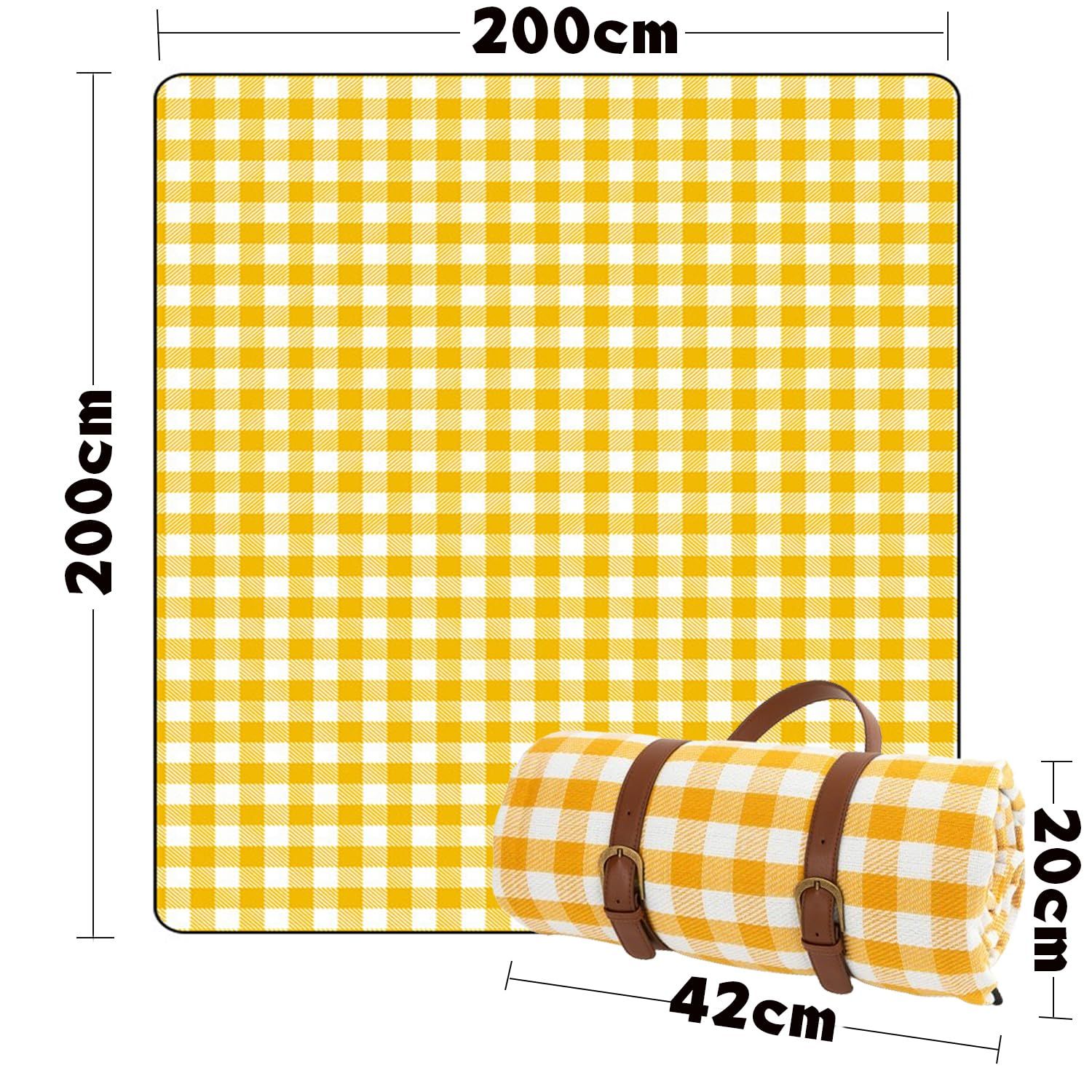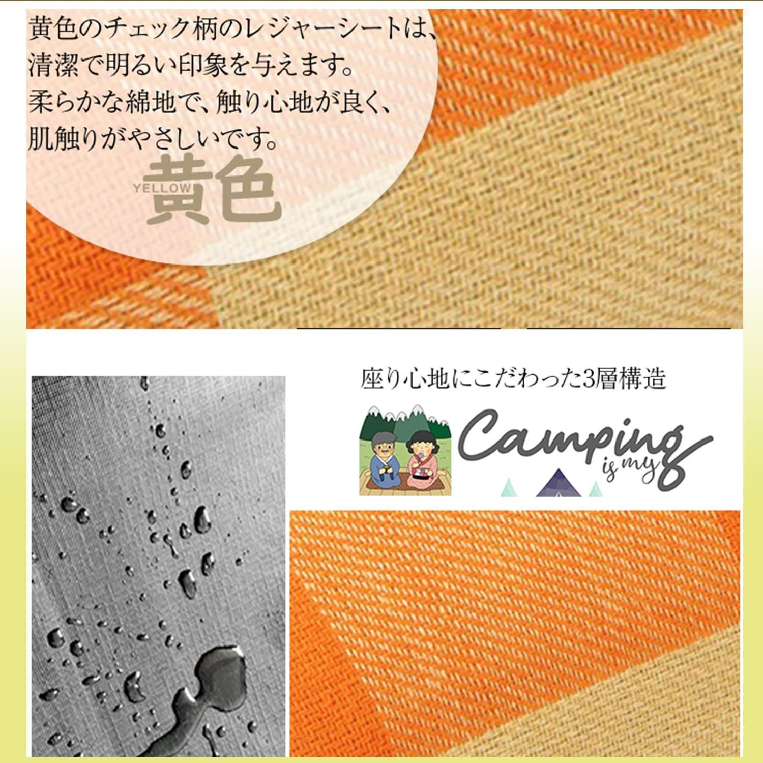 レジャーシート 200x200cm 厚手 ピクニックシート 大判 防水 防災 キャンプ マット クッション アウトドア 持ち運び便利 洗える カーペット チェック柄 (黄色)