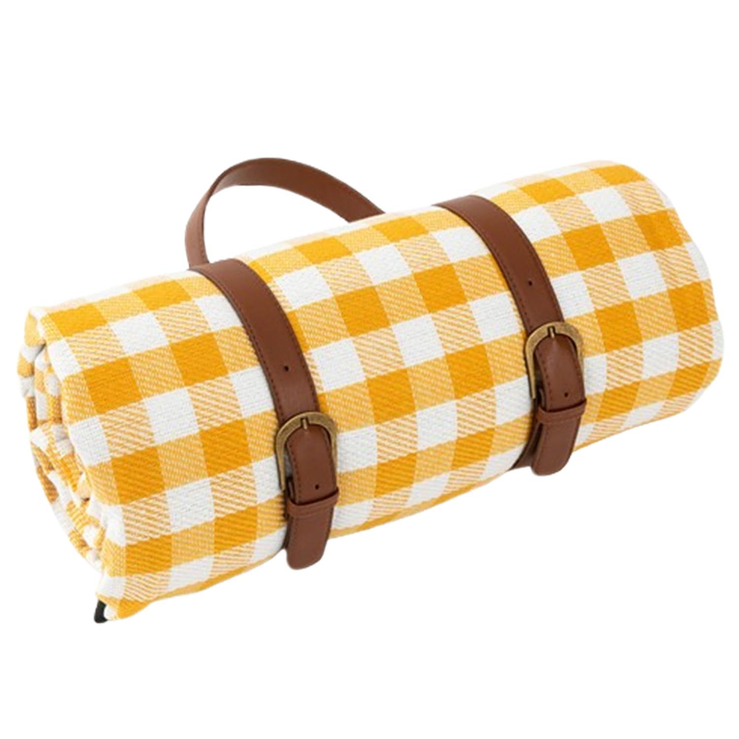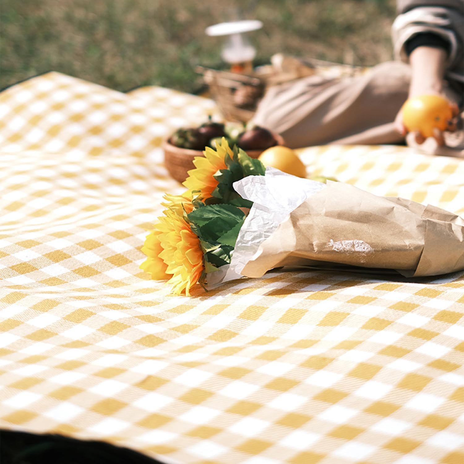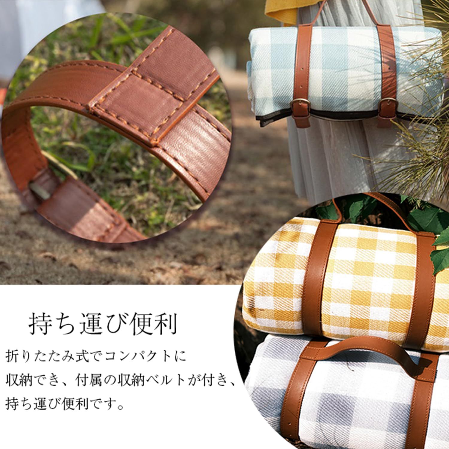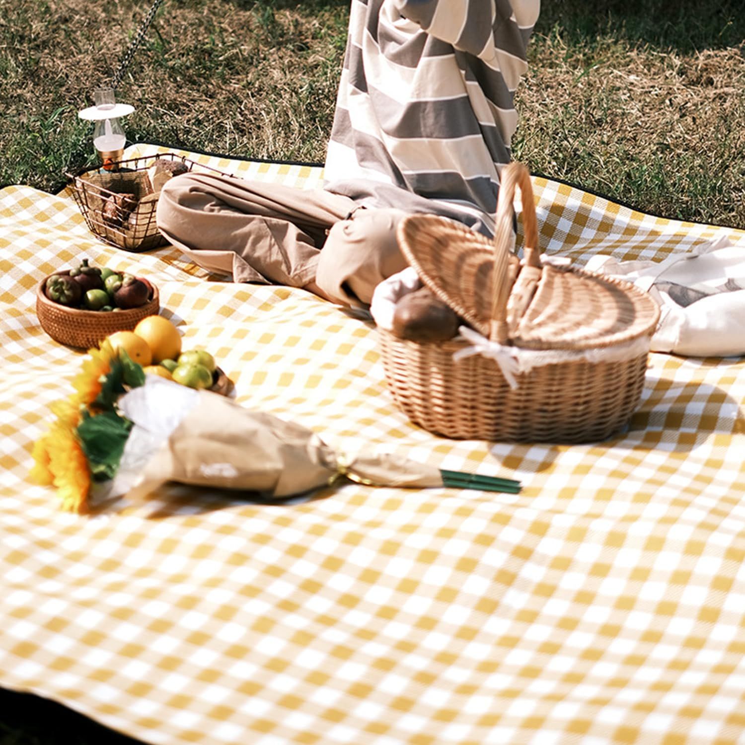 レジャーシート 200x200cm 厚手 ピクニックシート 大判 防水 防災 キャンプ マット クッション アウトドア 持ち運び便利 洗える カーペット チェック柄 (黄色)