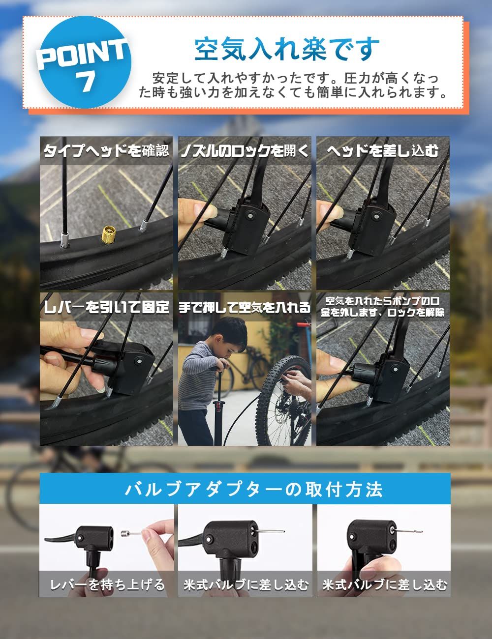 自転車 空気入れ 仏式/英式/米式バルブ対応【160PSI/11Bar】 くうきいれ 自転車 ロードバイク くうき空気入れ コンパクト 小型 軽量 非電動 フレンチバルブ 、電動車、バイク、ボール、球、針、浮き輪用 日本語取扱説明書付き