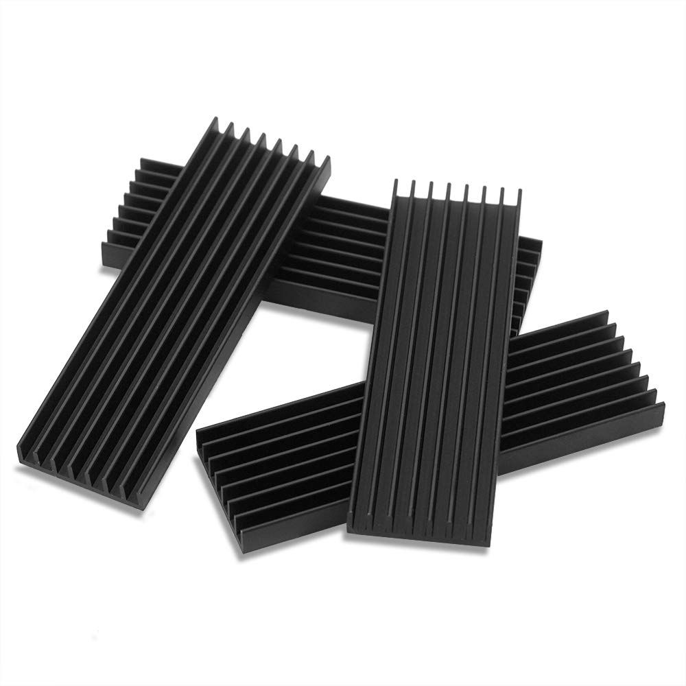 4個ヒートシンク 導熱接着シート4pcs付き 熱暴走対策 冷却ラジエーターフィンCPU ICチップ 回路基板 LEDアンプに適用 アルミニウム 黒 70mm×22mm×6mm