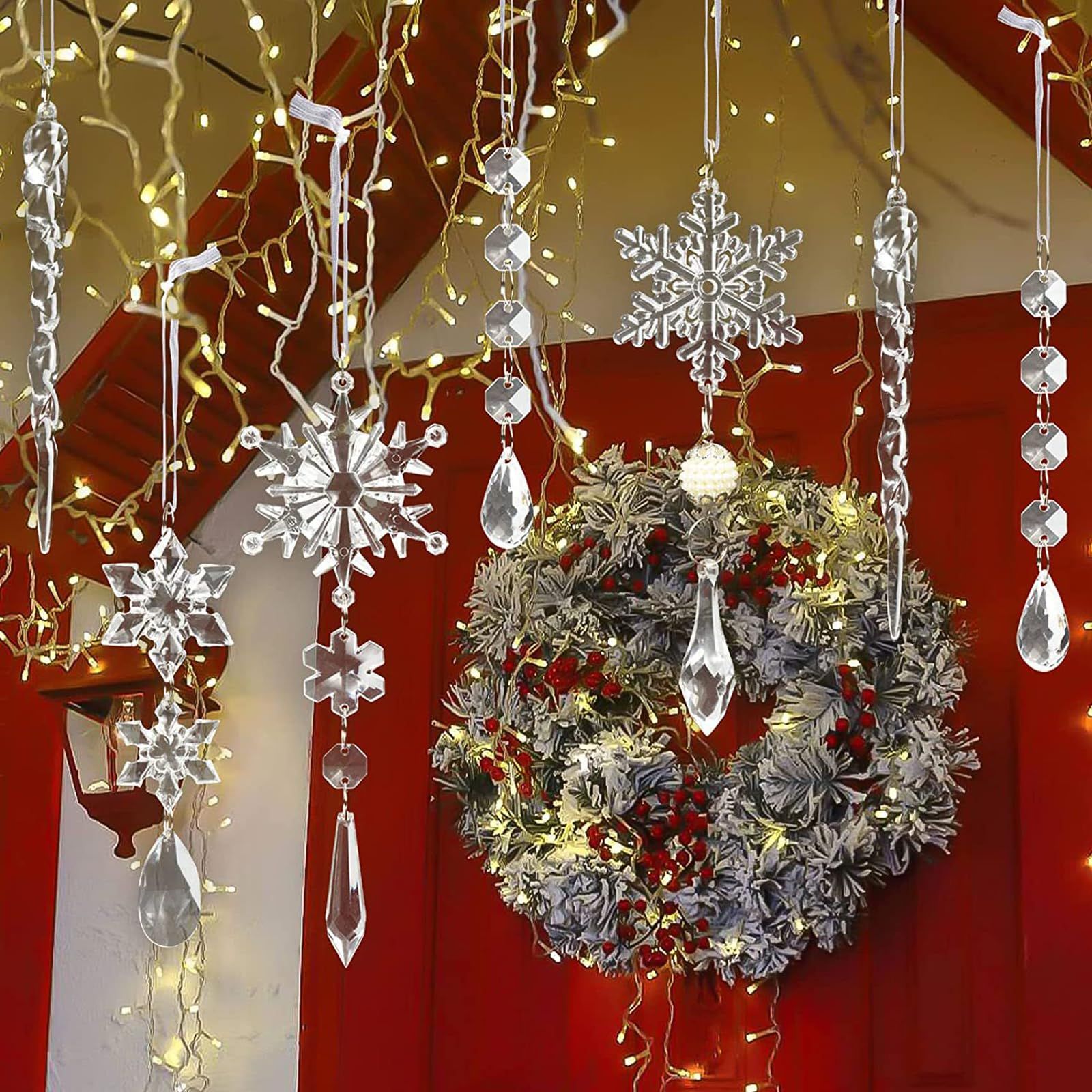 クリスマスツリー オーナメントセット クリスマスツリー飾り クリスタル 雪の結晶 氷柱 飾り吊り下げ クリスマスオーナメント 店舗装飾 部屋飾り 透明装飾 クリスマスパーティー飾り 糸付き (雪の結晶+氷柱 10枚セット)