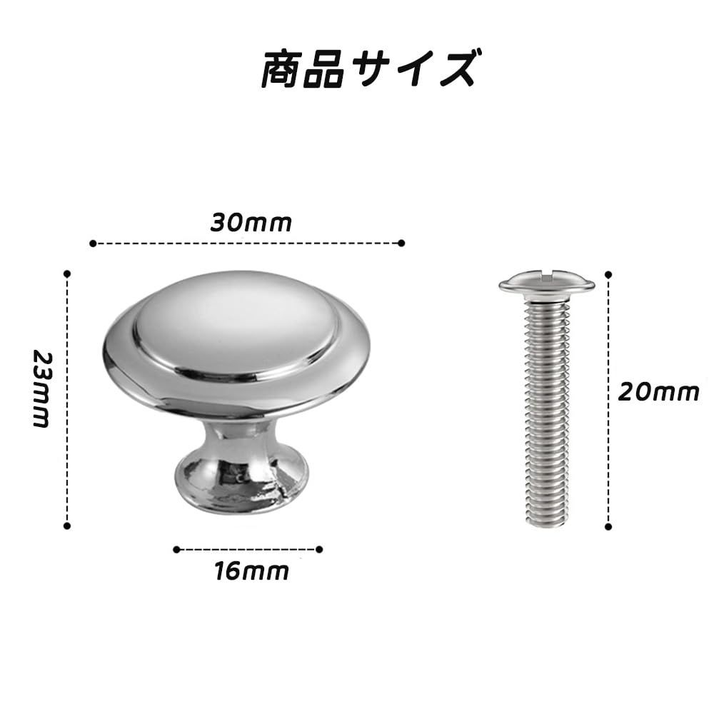 【寸法情報】各ラウンドキャビネットノブは、直径約30ミリメートル、高さ23ミリメートルインチであり、ネジは約20ミリメートルであり、購入する前に、慎重にネジの長さを見て、事前に引き出しの厚さを測定してください。