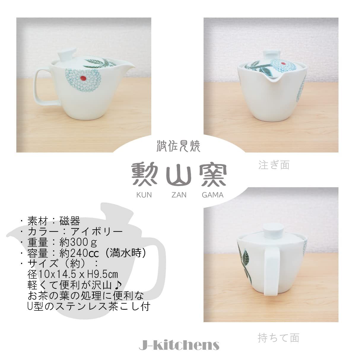 J-kitchens 勲山窯 急須 S 茶こし付き 240ml 1人用 ~ 2人用 波佐見焼 日本製 ダリア プレミアム