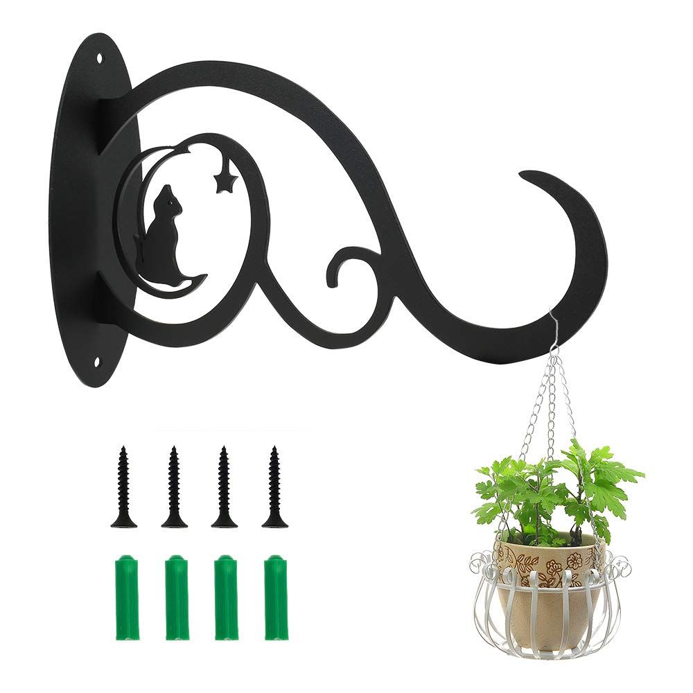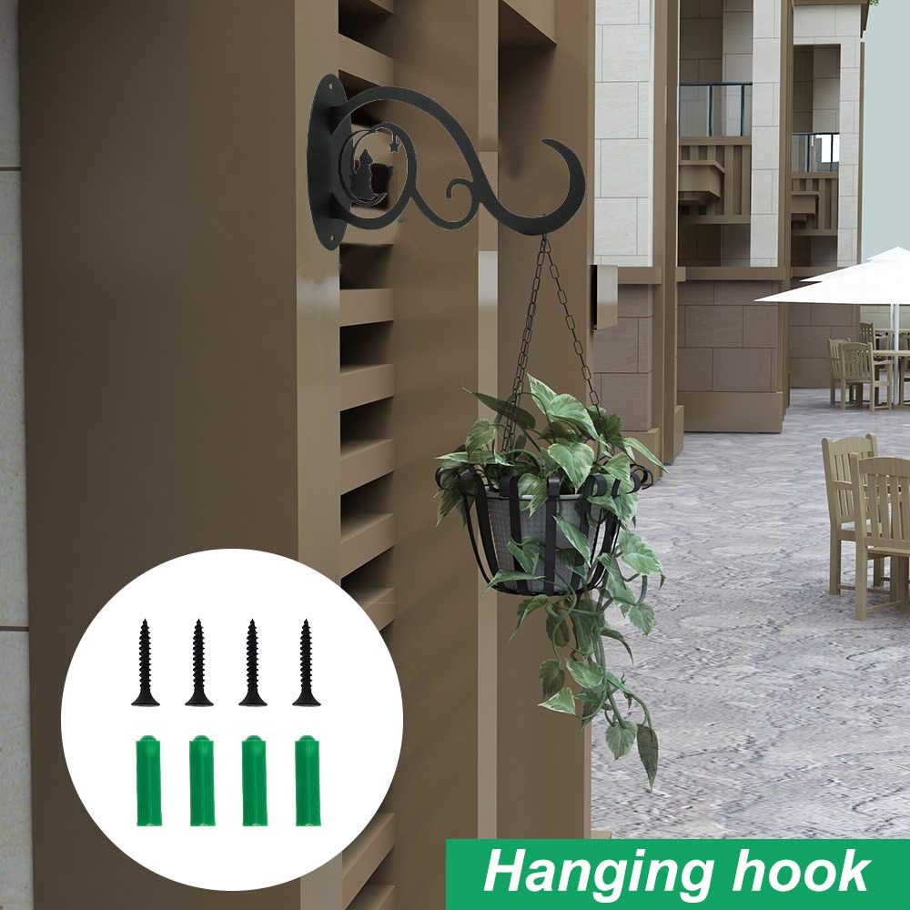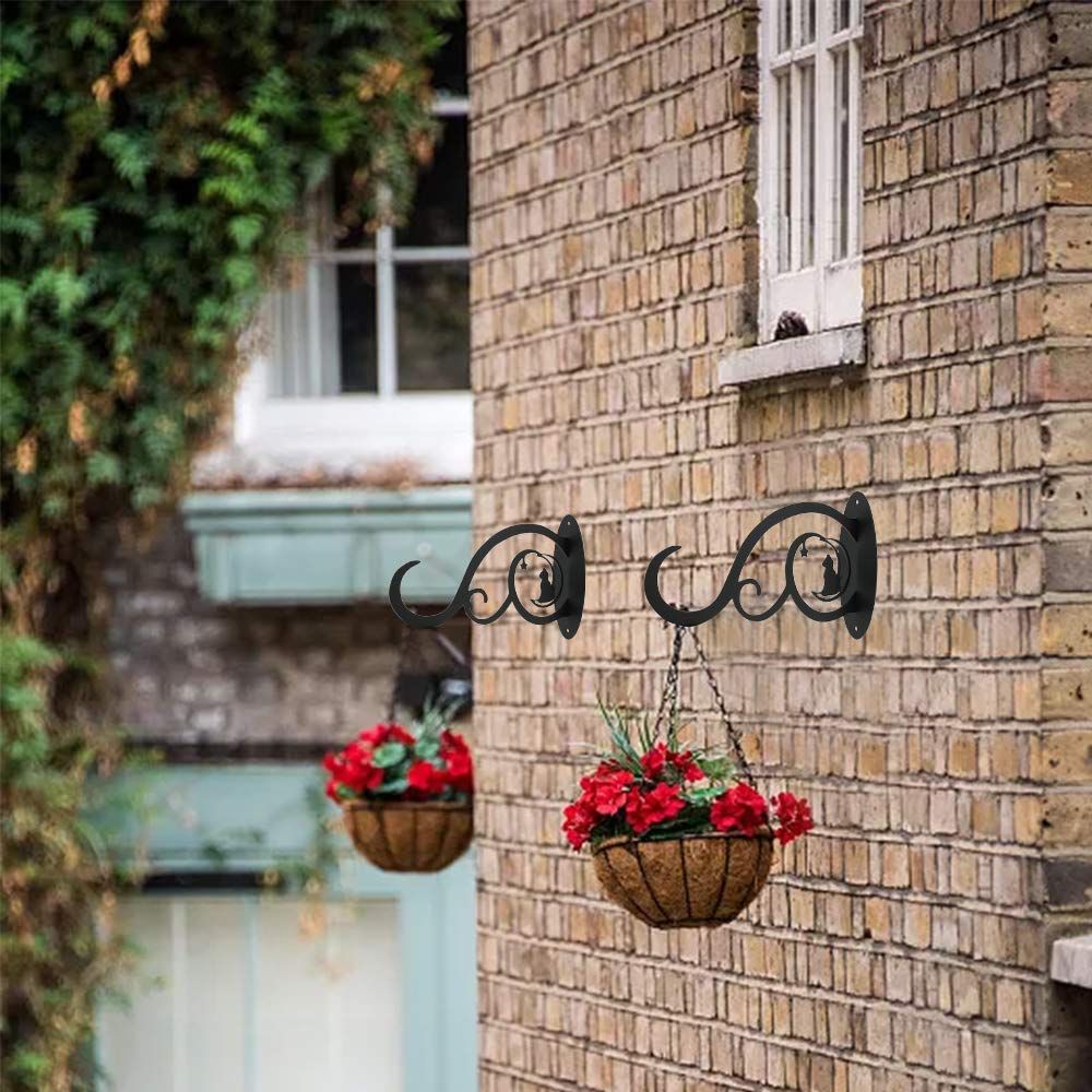 ハンギング アンティーク ブラック アイアンブラケット 壁面用フック 屋内外 ガーデンブラケット ぶら下げ植物ブラケット 吊り下げ アンティーク調 庭用植物用ブラケット プランター 壁掛け用ブラケット 鉢植 防錆ブラケット 屋内外 2個セット ブラック (C)