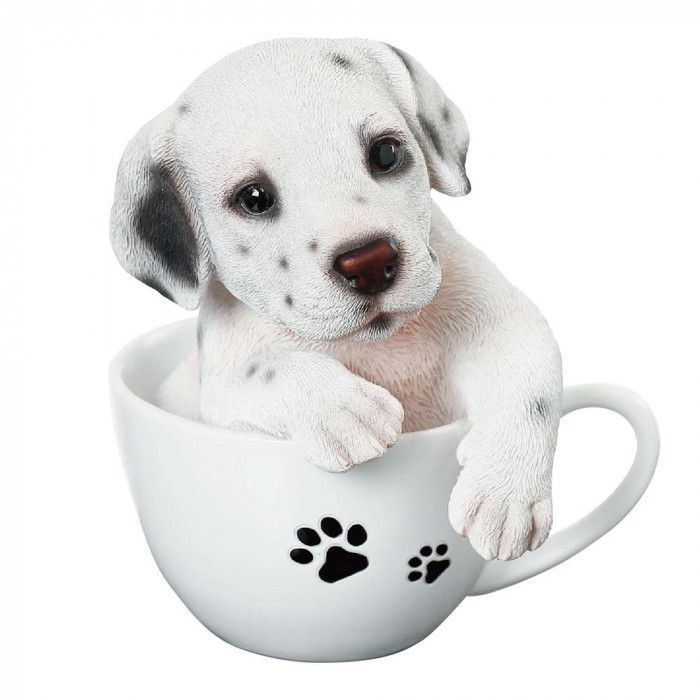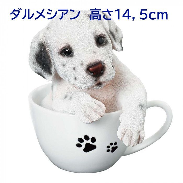 コーヒーカップに入った ドッグオーナメント(ダルメシアン) 高さ14.5cm ガーデンオブジェ