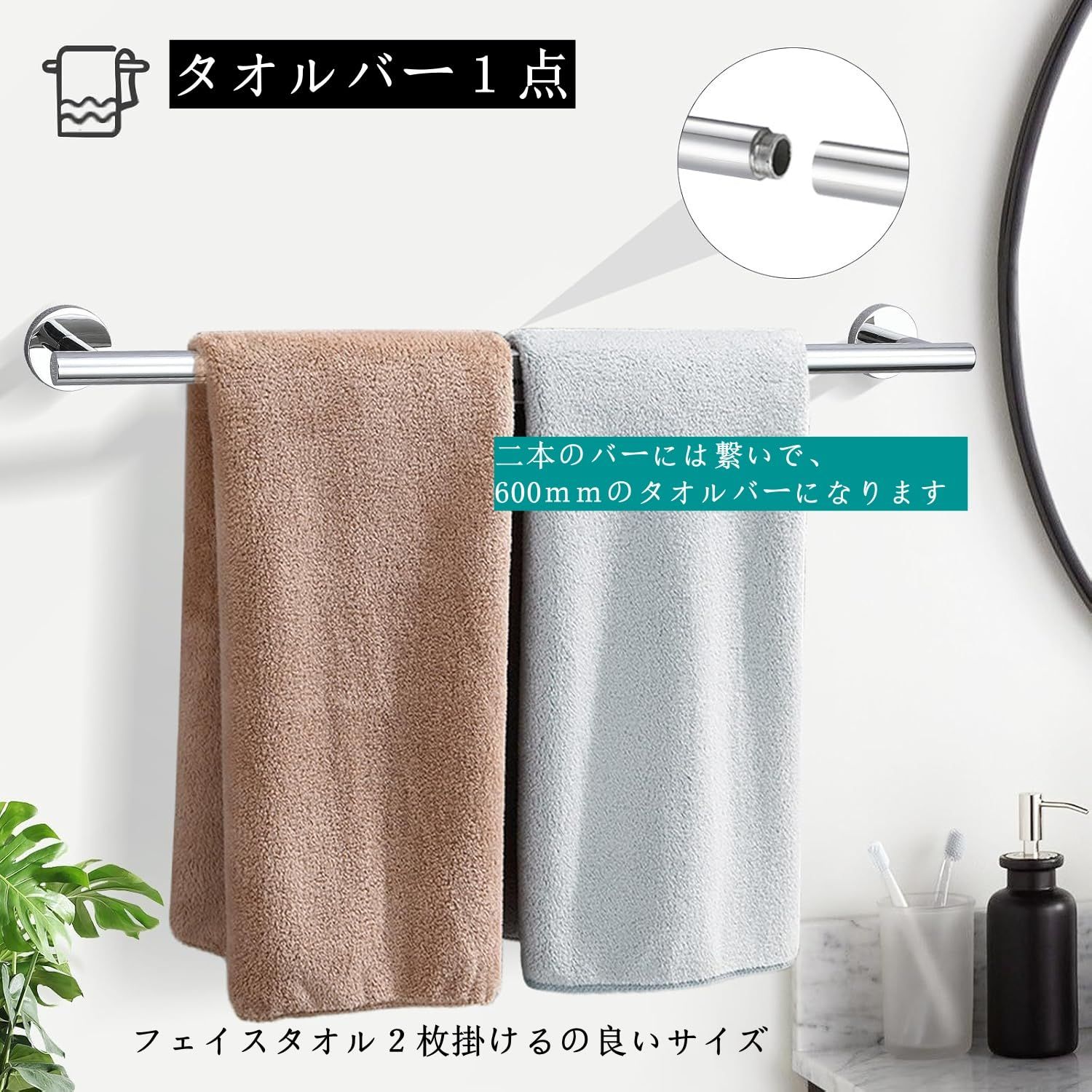 【パッケージ内容】タオルバー×1 トイレットペーパーホルダー×1、タオルハンガーリング×1、コートフック×1