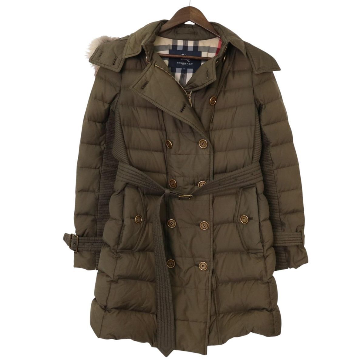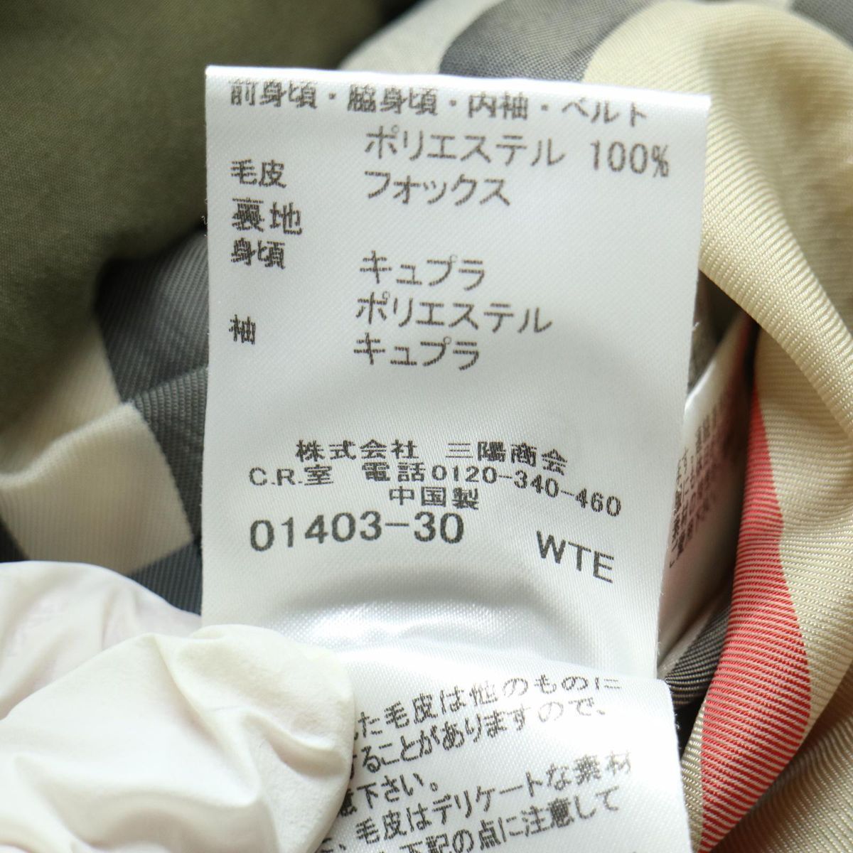 ダブルボタン フォックスファー ベルト フード着脱可能 2WA メガチェック ノバチェック 38 Mサイズ カーキ レディース