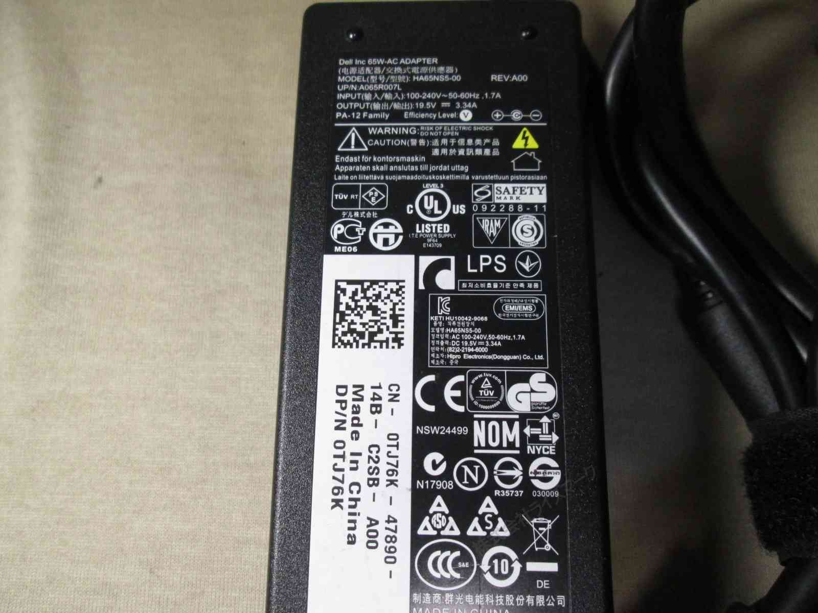 商品名:ACアダプター DELL HA65NS5-00 19.5V 3.34A