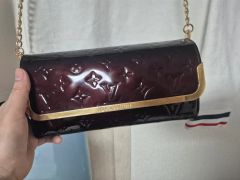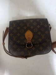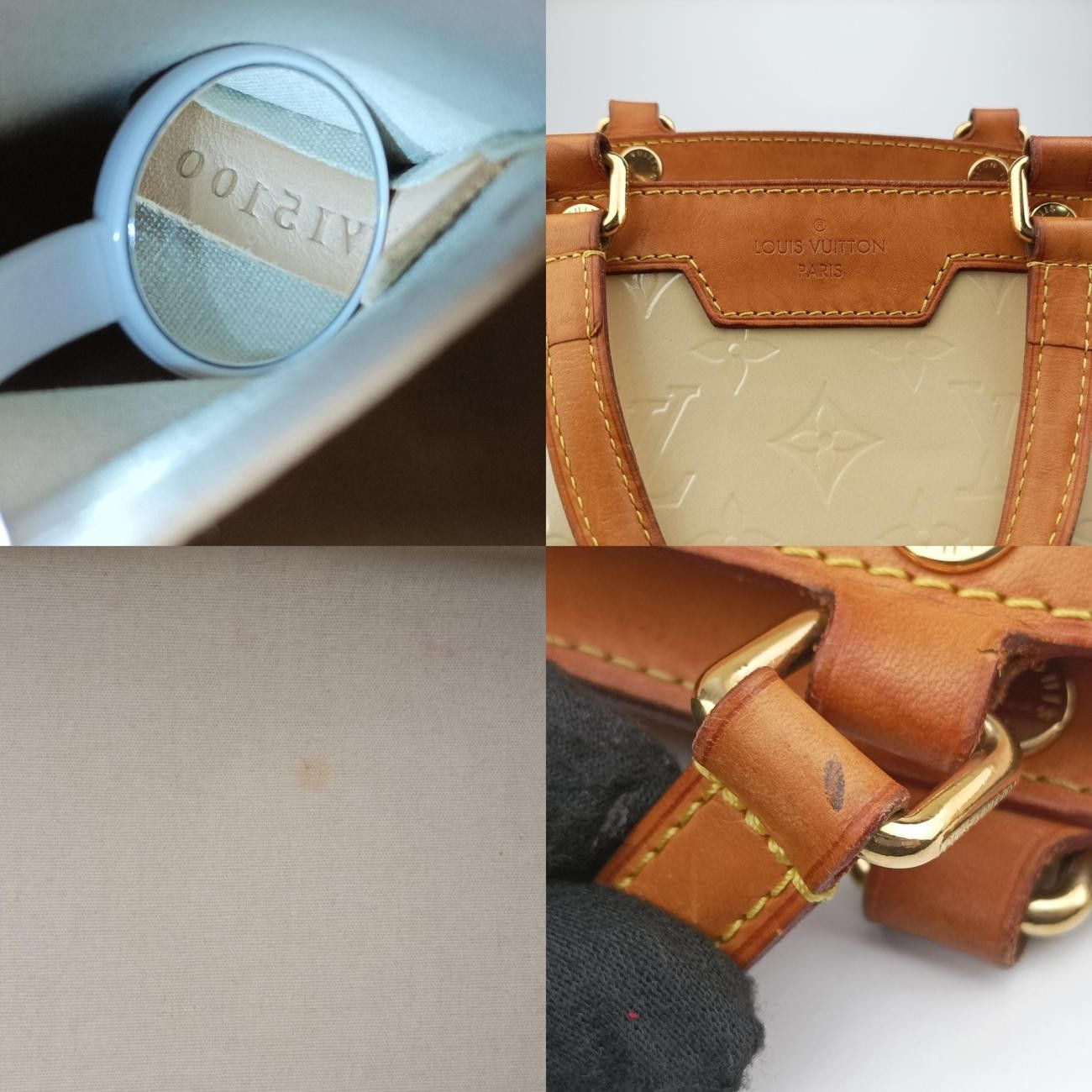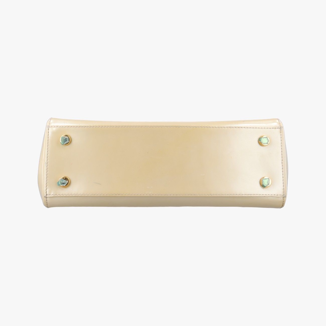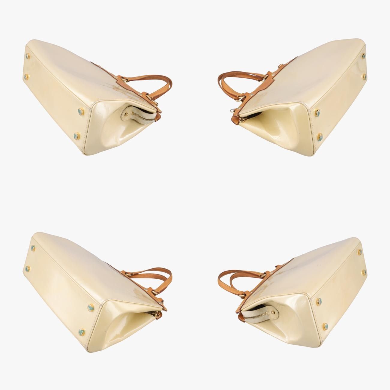 全体の中度使用跡、被覆の軽度吸色、四角、金物中度摩耗、全体植生タンニン皮革の中度変色、手提げ油辺、肩ベルト油辺の軽度摩耗、内側の軽い汚れ;