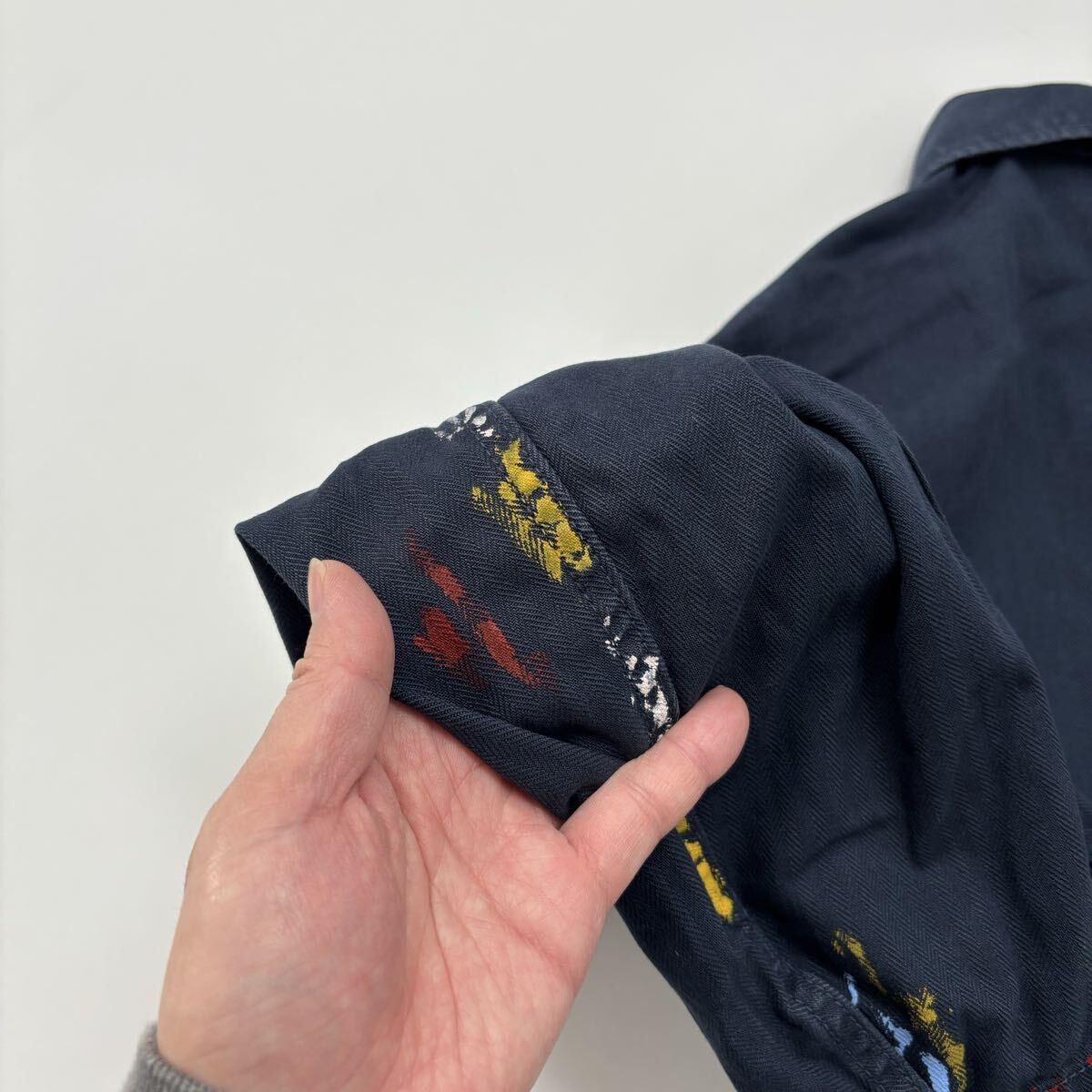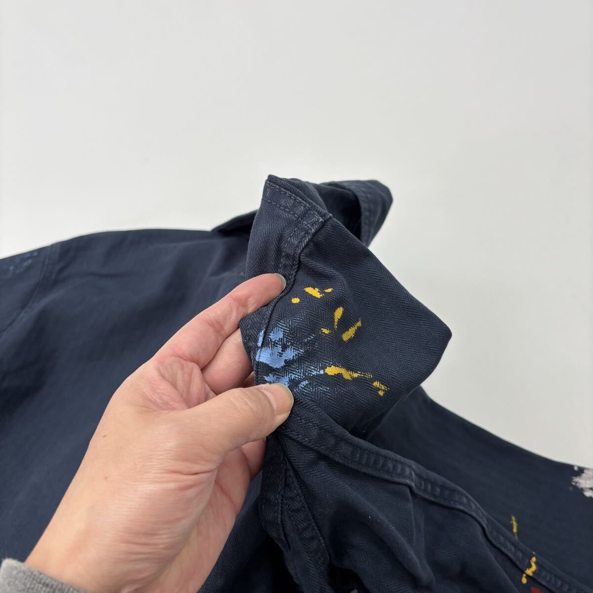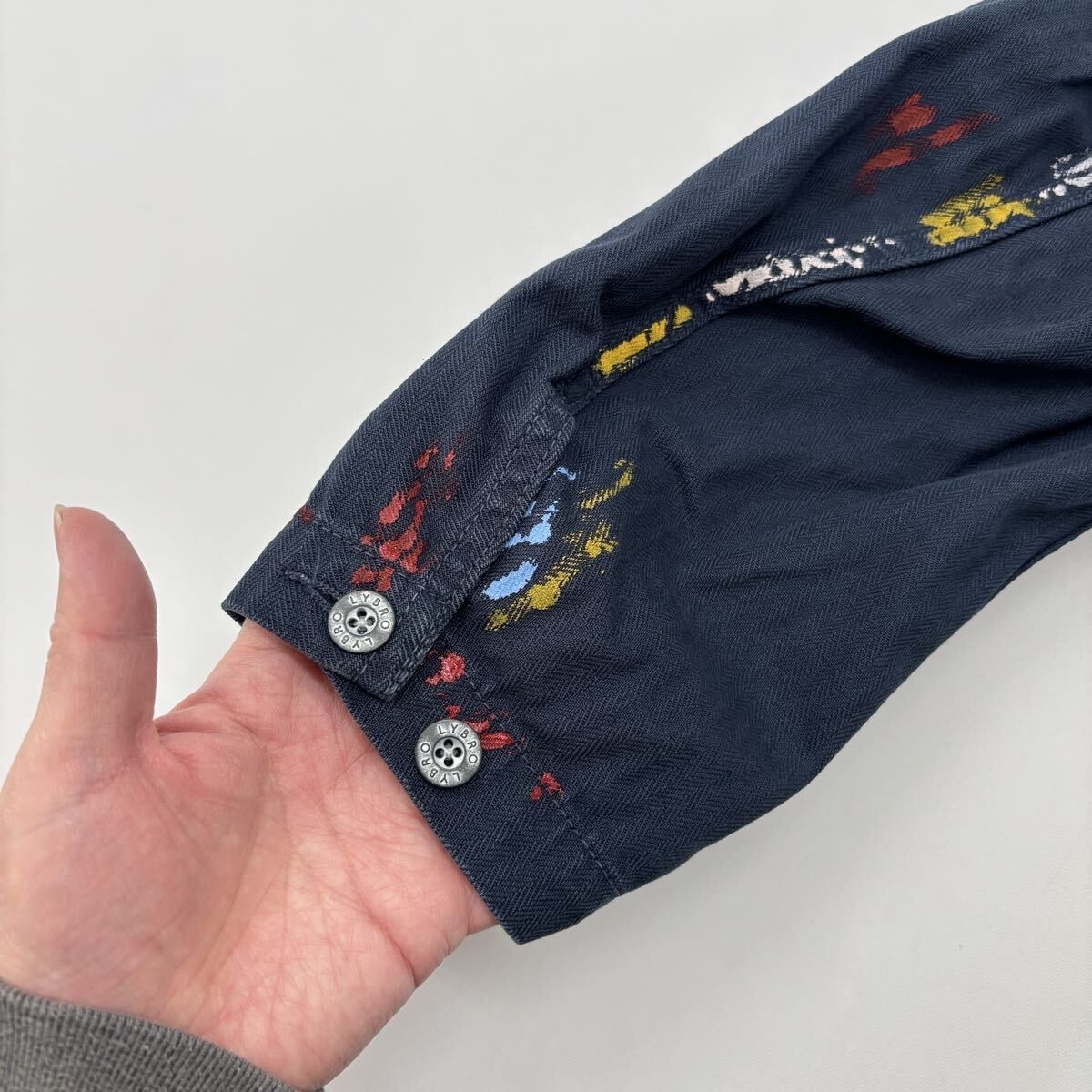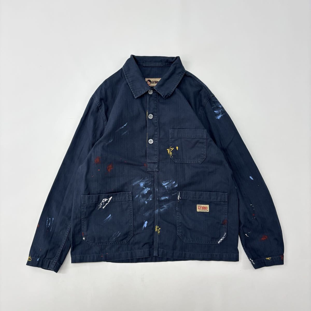 Nigel Cabourn ナイジェルケーボン LYBRO ライブロ POH DECK SHIRT PAINT ペイント ヘリンボーン プルオーバー シャツ サイズ 46 712-0080