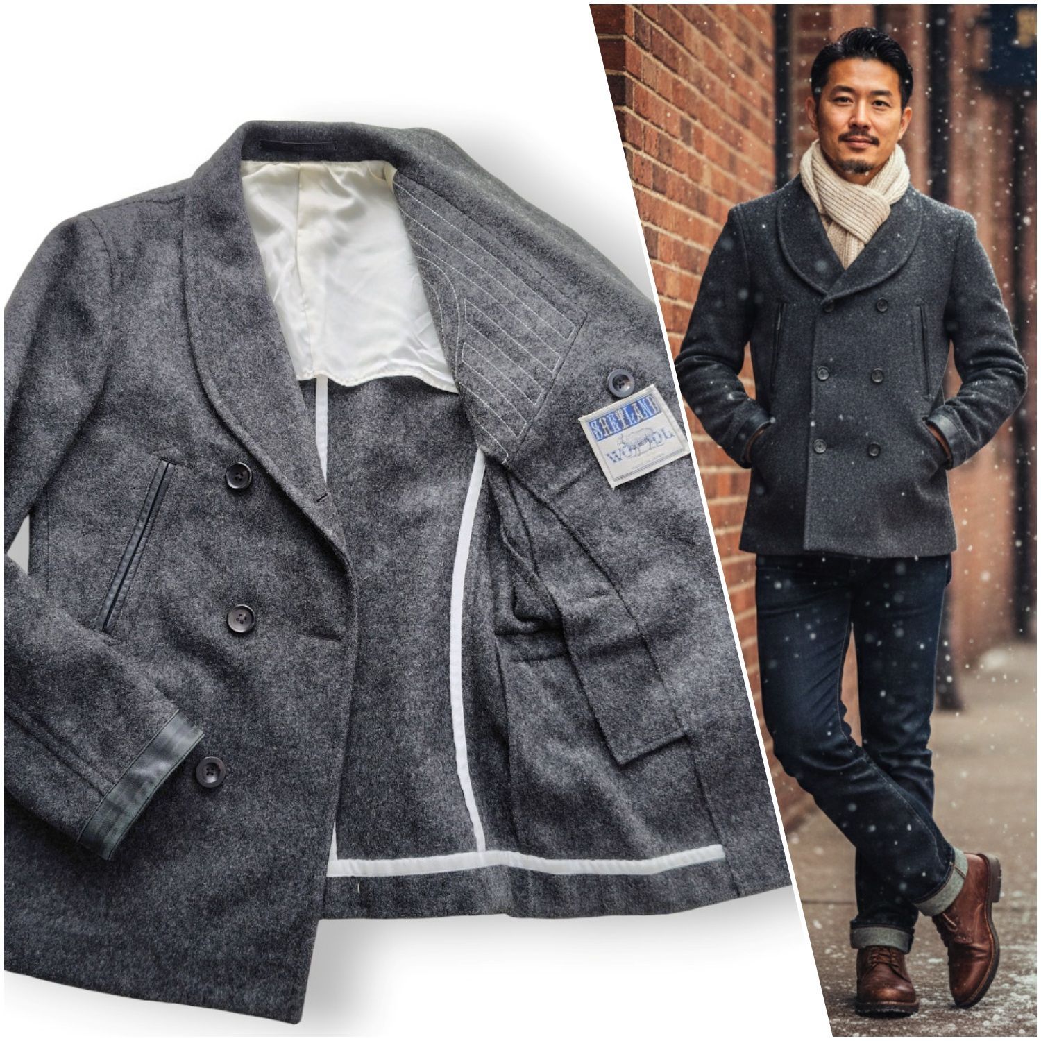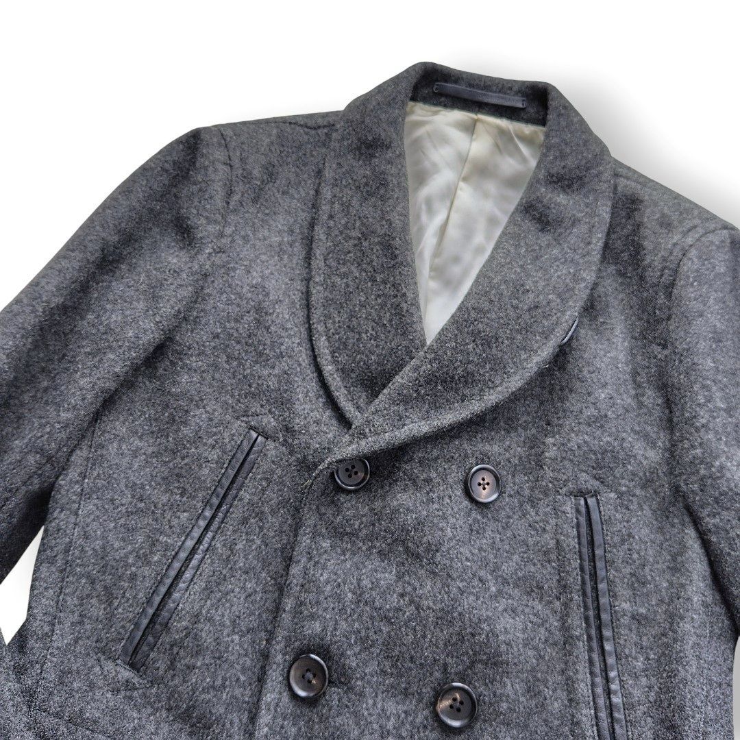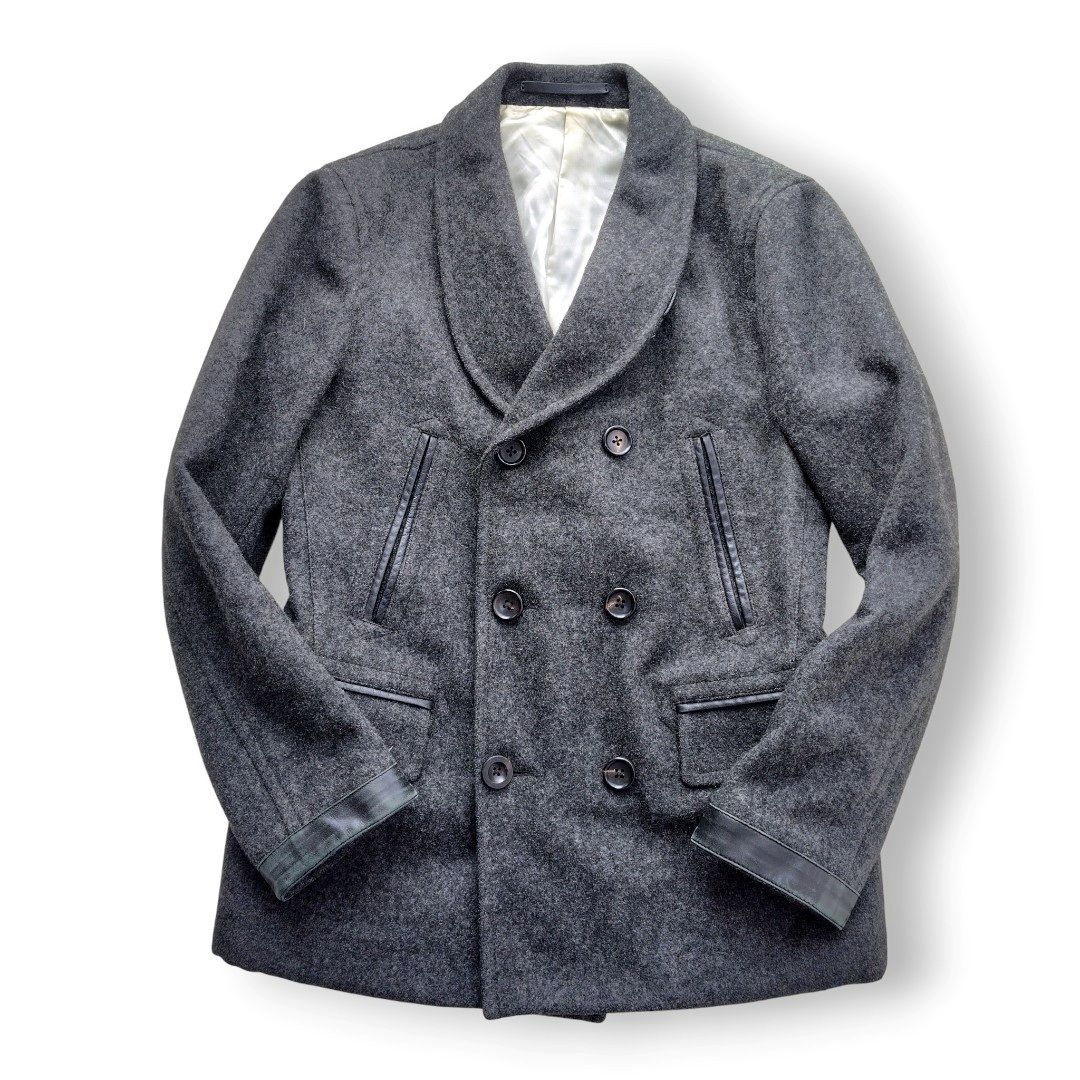 襟元は優雅なショールカラー(ヘチマ襟)仕立て。一般的なピーコートとは一線を画す、柔らかな大人の色気を漂わせます。