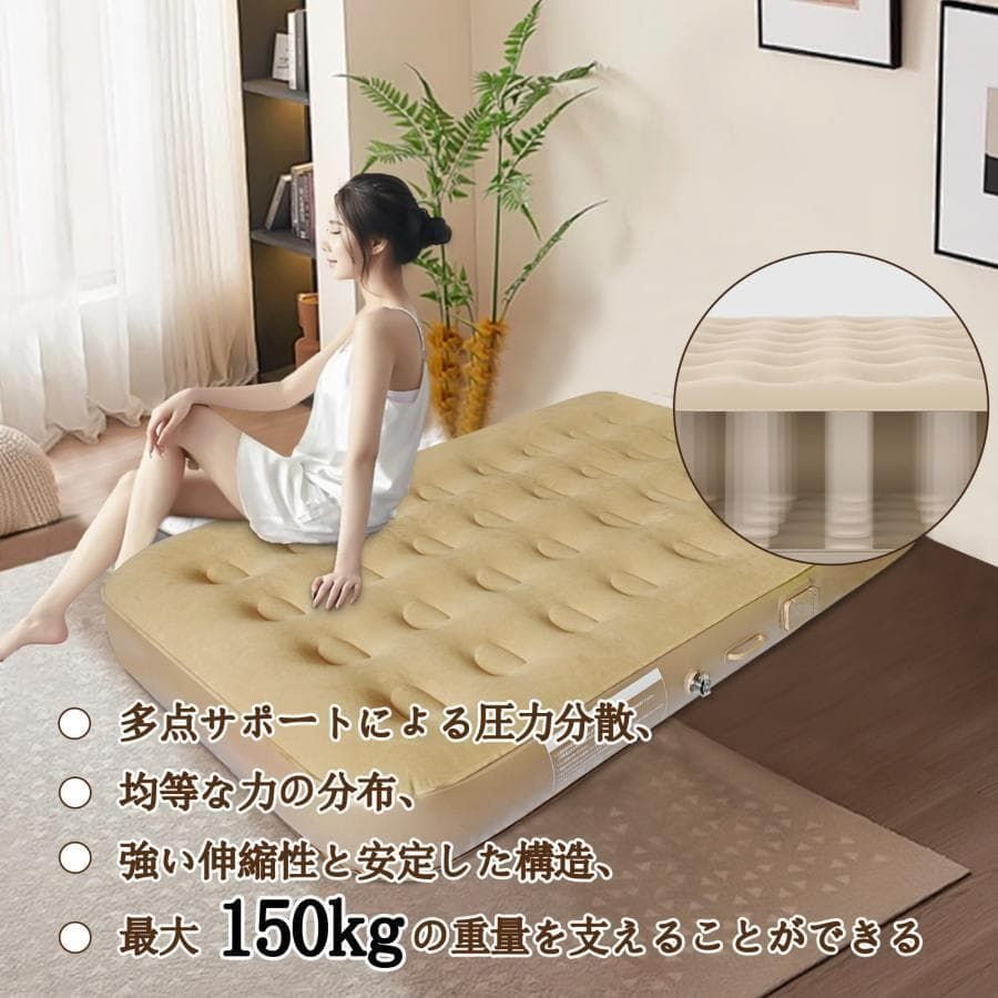 【快適なサポートと睡眠】:インフレーシングルベッドで地面から25cmの高さ衝撃を吸収する設計で多点サポートによる圧力分散を実現。体の曲線にフィットし、スローリバウンド機能により、体を優しく包み込み、静かな睡眠環境を提供し、アウトドアでの体験をより快適にします。