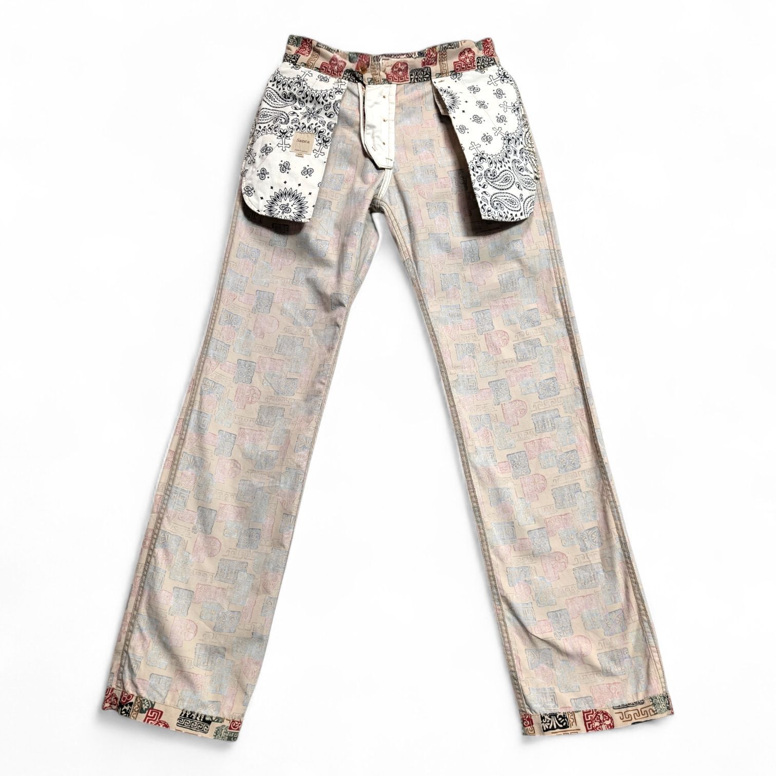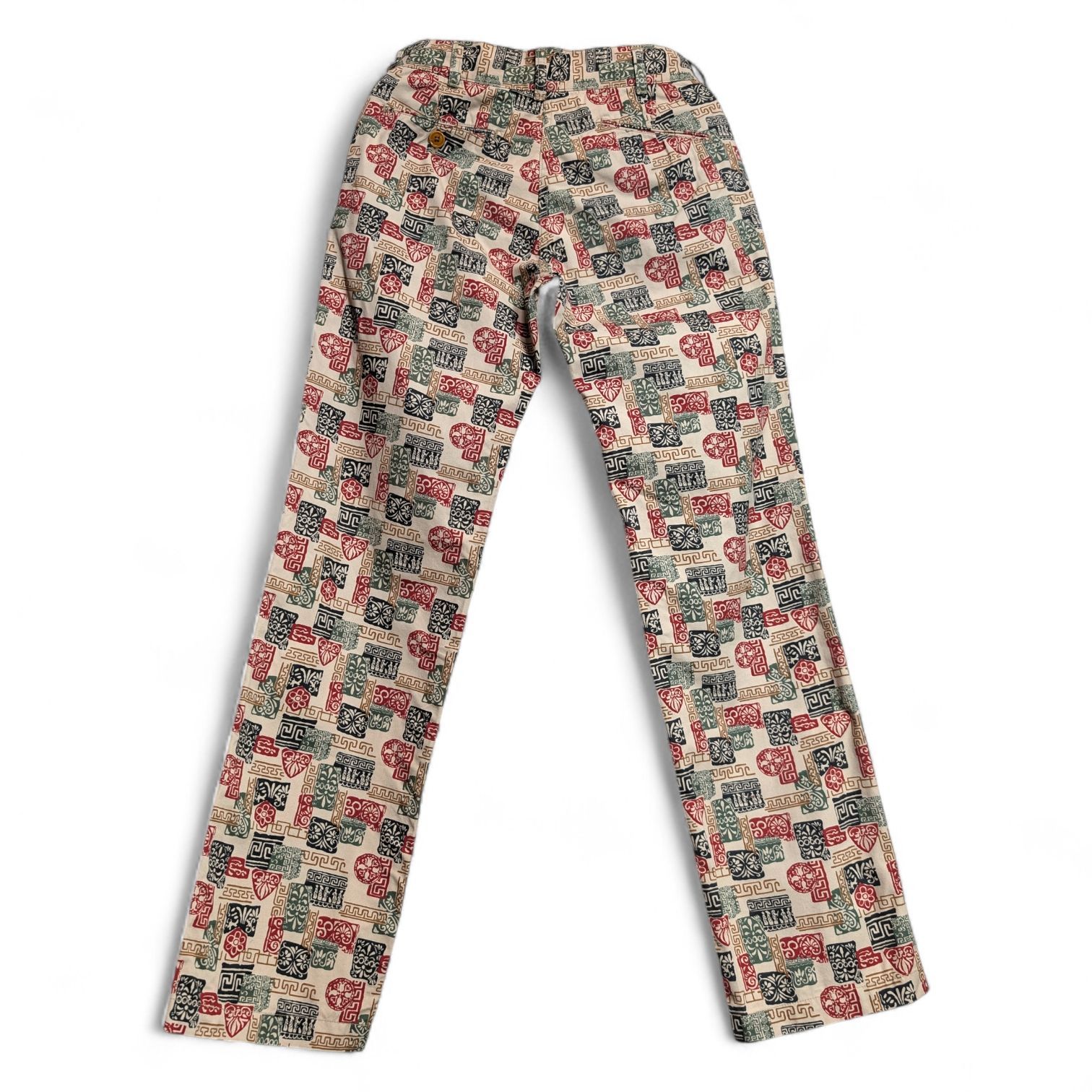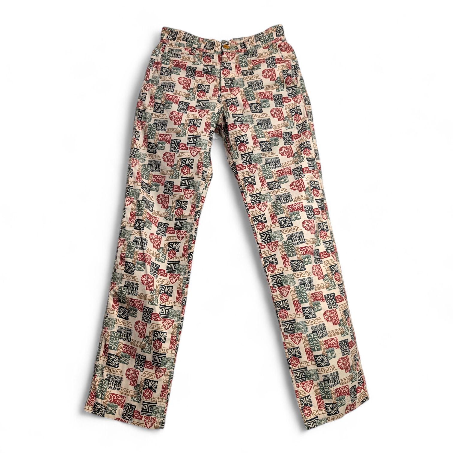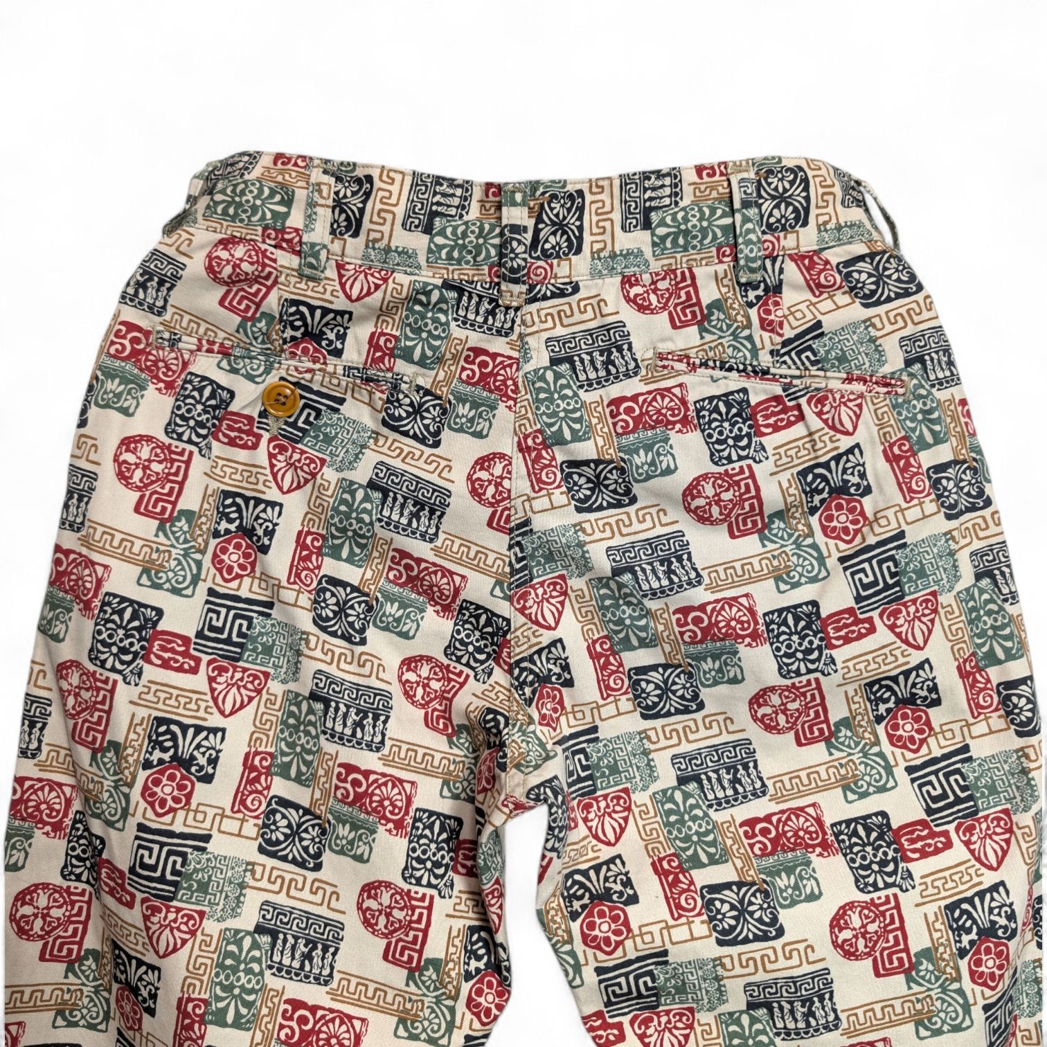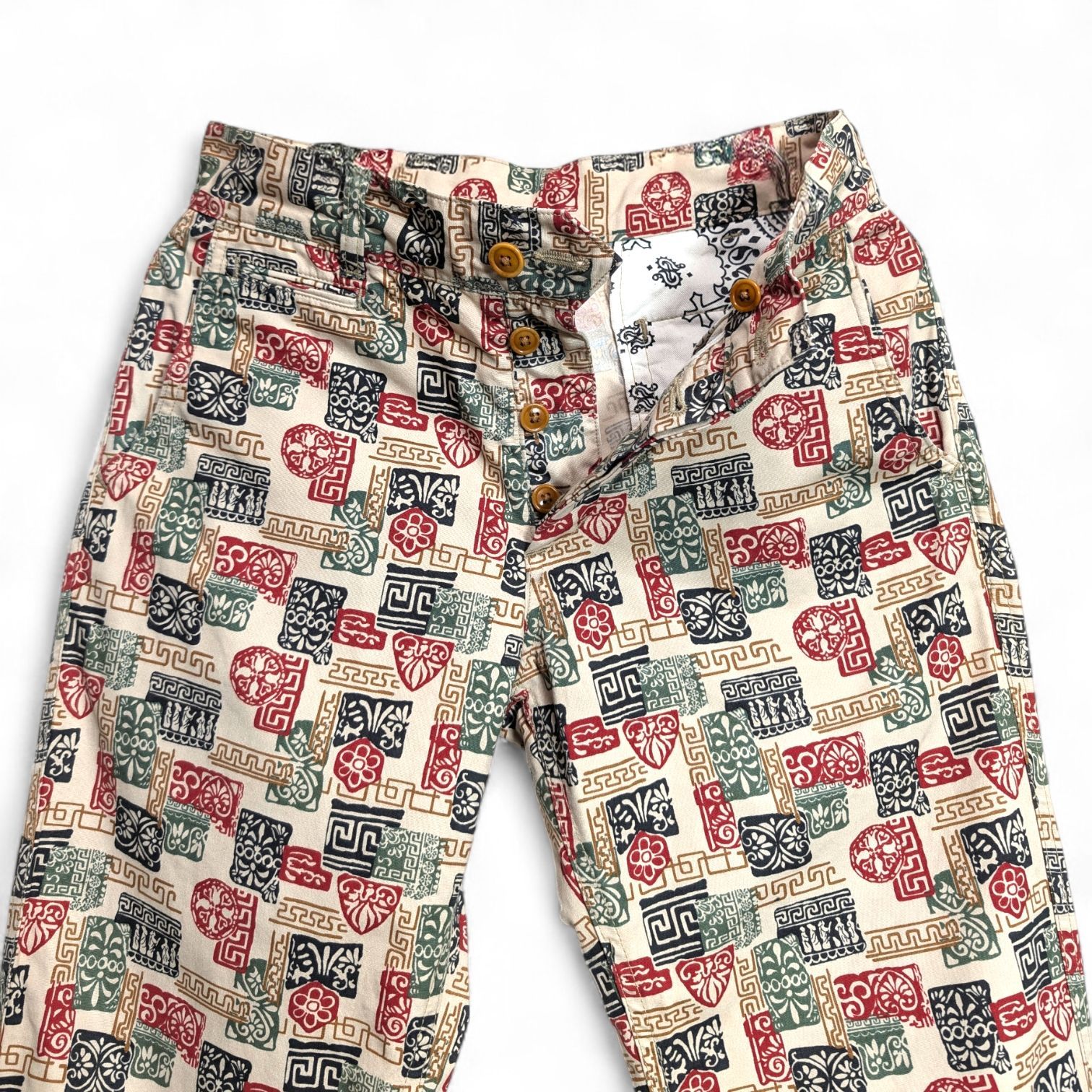 一見和柄にも見えるこちらの総柄は薄いベージュ地に赤・黒・緑・茶とそれぞれレトロなニュアンスの色で仕上げられております。