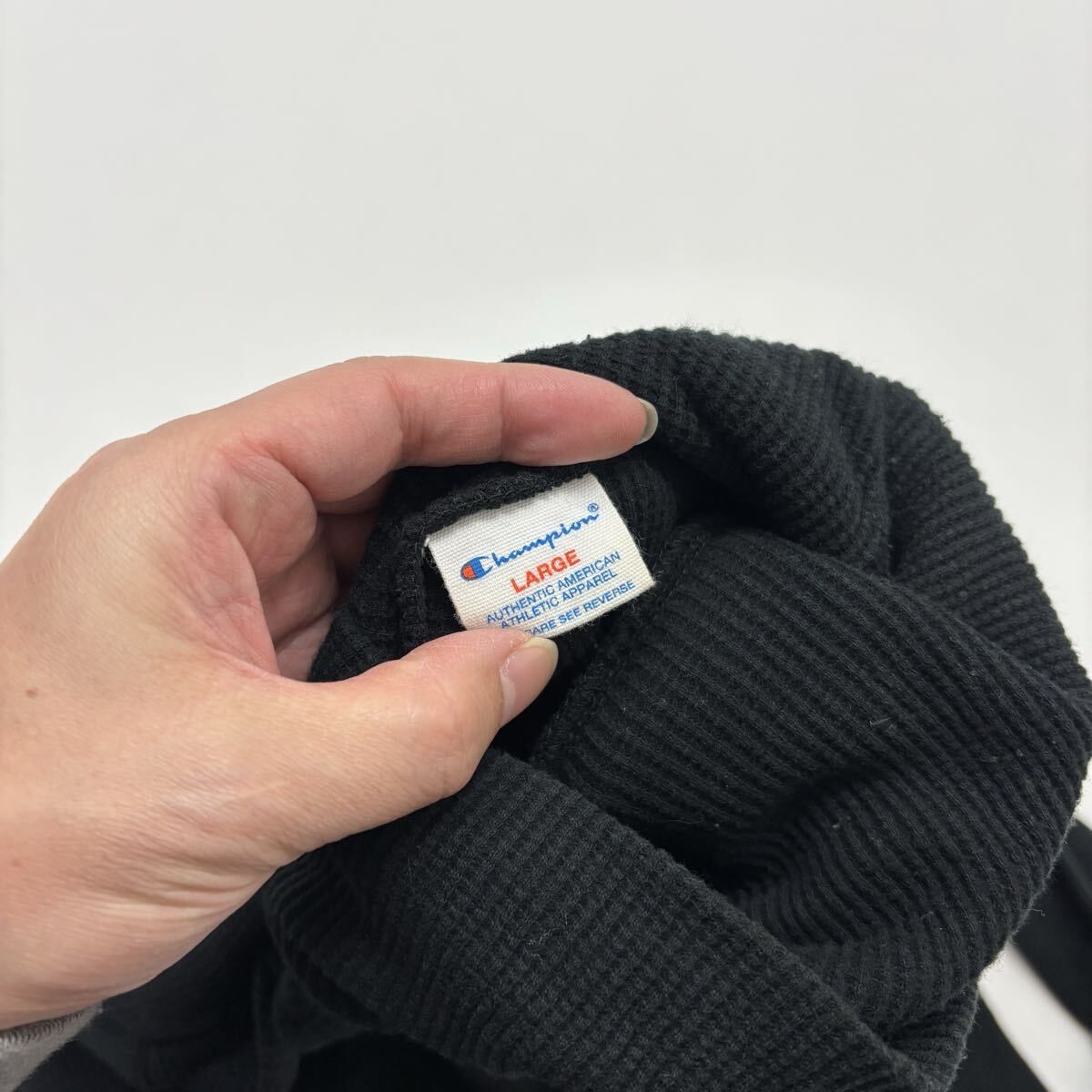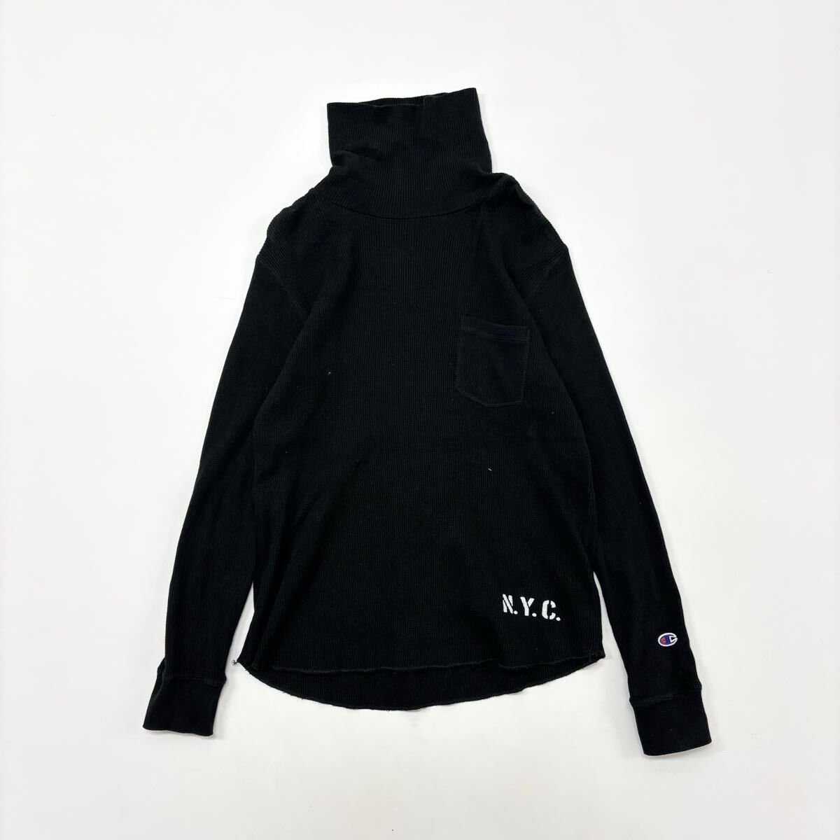 Champion チャンピオン 復刻 トリコタグ ステンシル サーマル ハイネック ロング Tシャツ ロンT BLACK ブラック サイズ L 712-0005