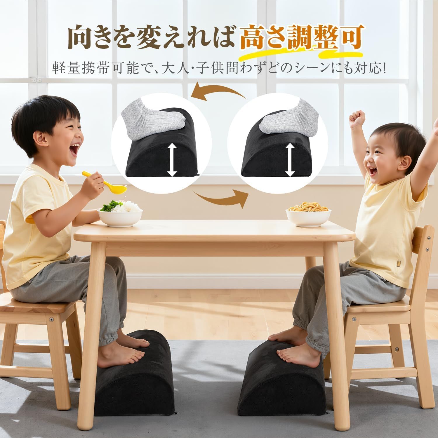 【多シーン対応・多機能設計】表裏 2 面で踏み込み高さを調整可能で、着座時に膝が最もリラックスする姿勢をサポート。反転させればバランスボードとして使用でき、上下に揺動させることで足首のストレッチ効果も得られます。また、足枕としても活用可能で、うつ伏せや仰向けの時に足首や膝の下に敷くと、ふくらはぎから脊椎までのリラックスを実現。足置きとしてはもちろん、様々なシーンでいつでもリラックス時間を創造できる多機能フットレストです。