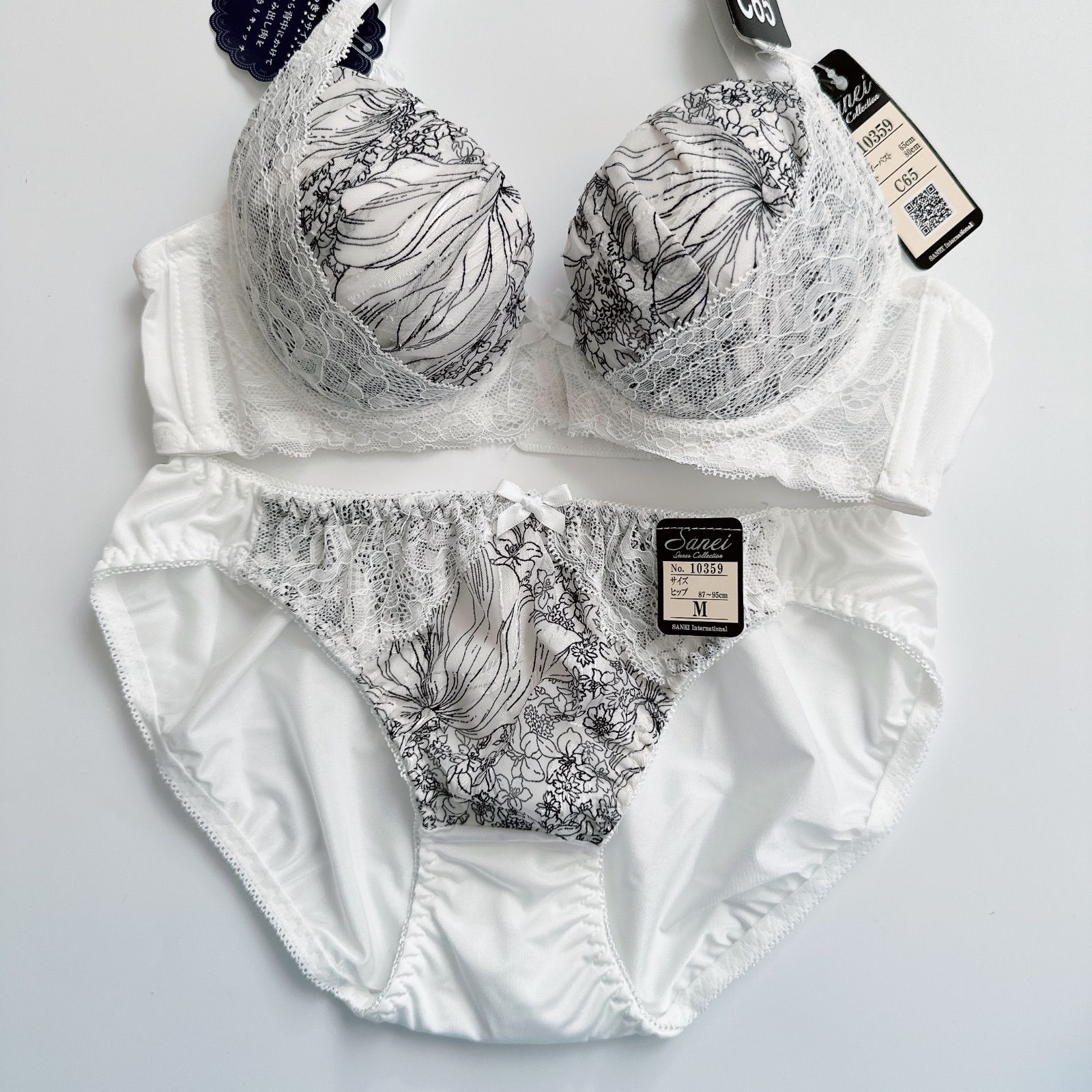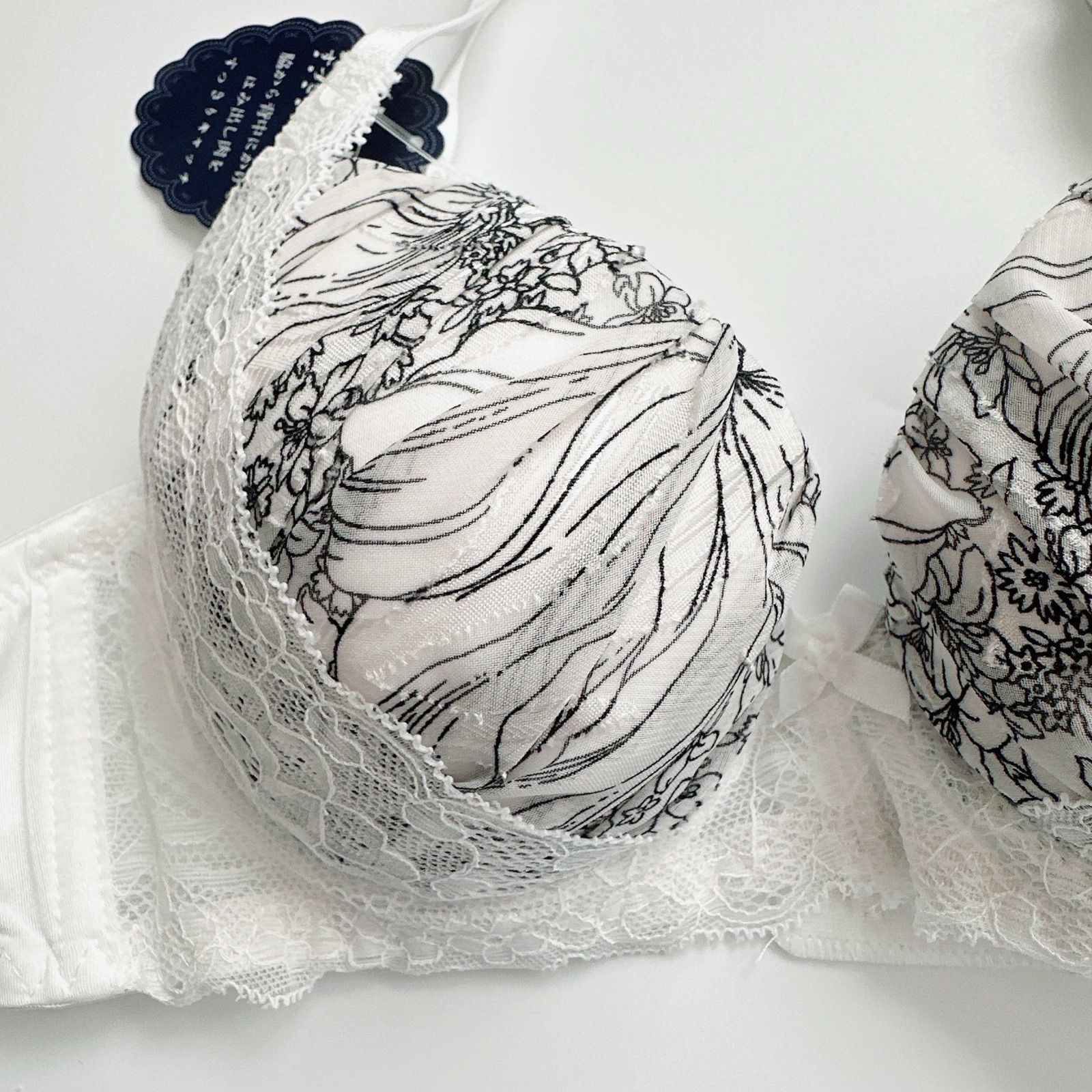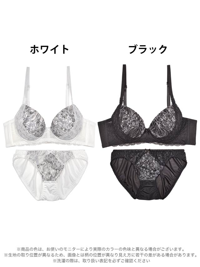 モノトーンプチフラワー育乳脇高ブラジャー&フルバックショーツ