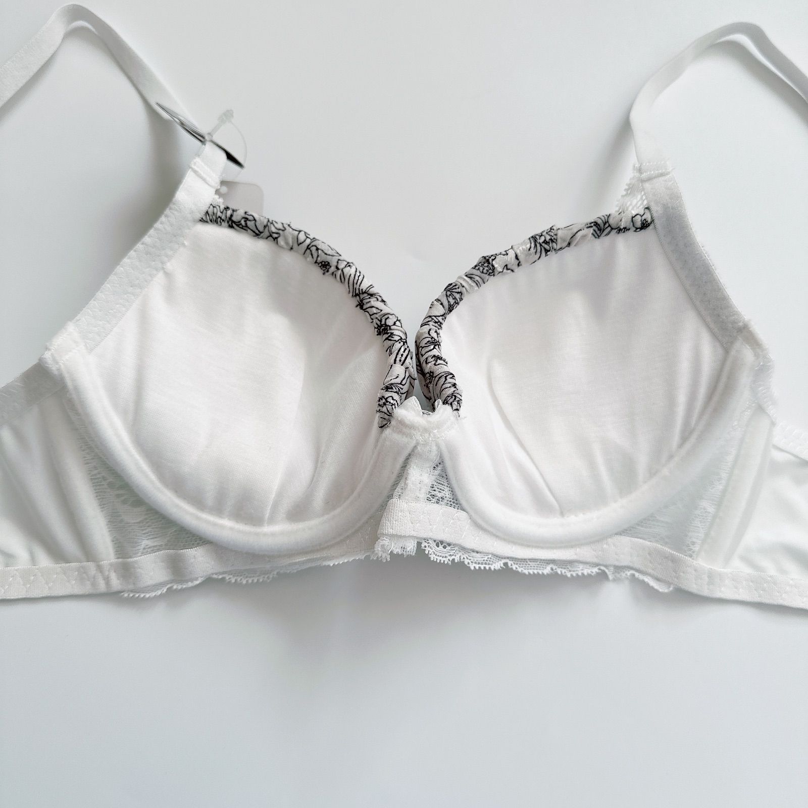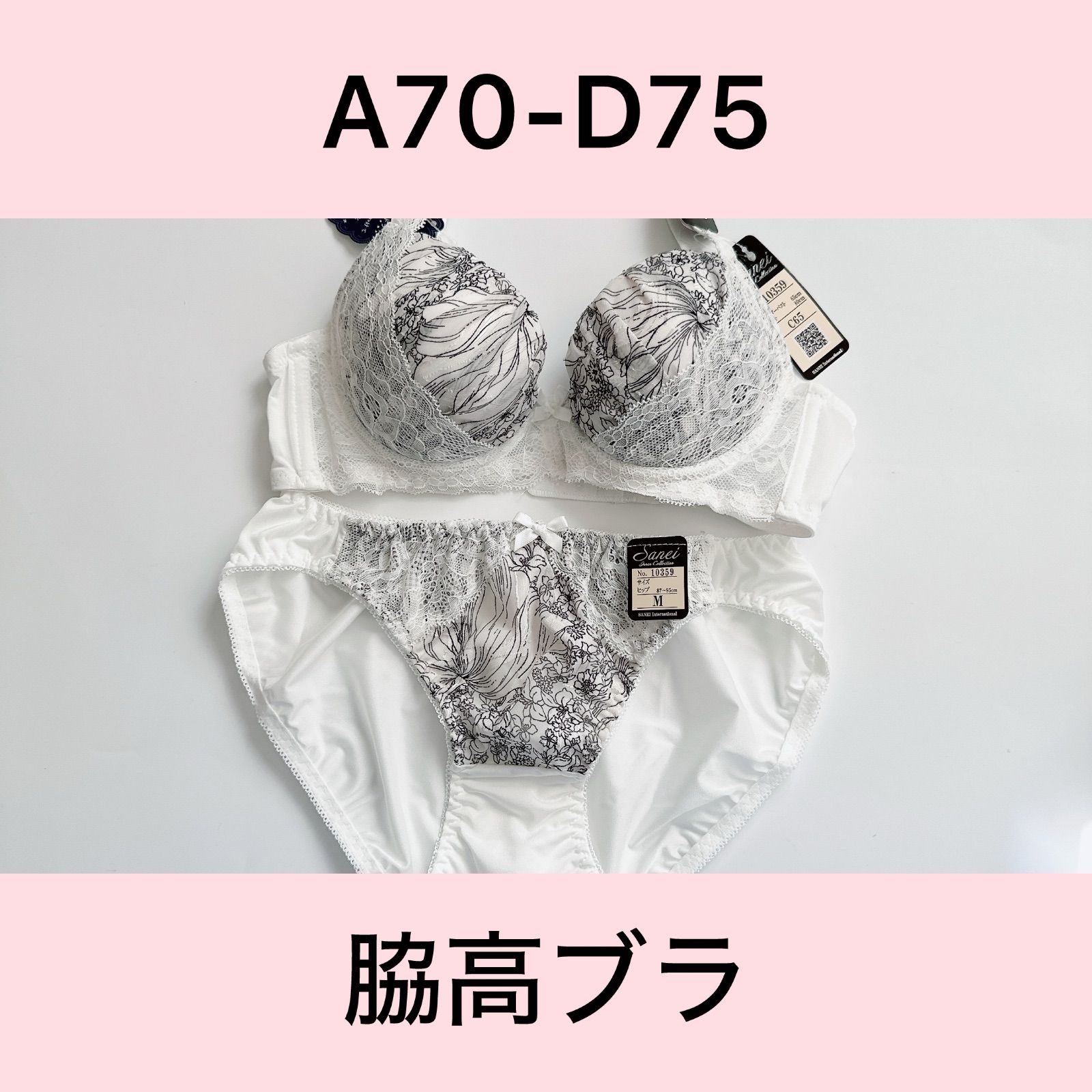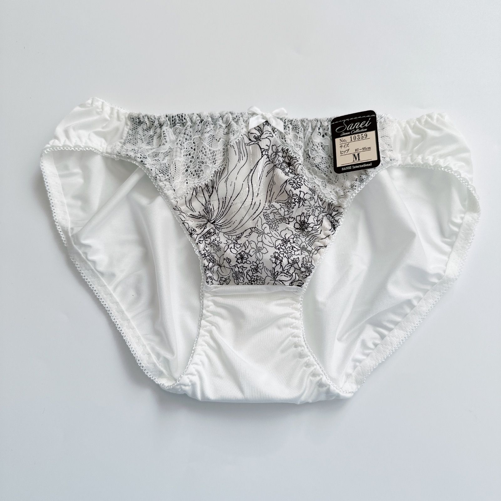 モノトーンプチフラワー育乳脇高ブラジャー&フルバックショーツ