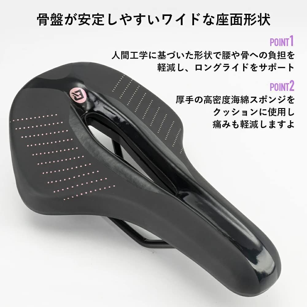 【人間工学に基づき設計】痛みや負担の軽減を考えたスポーツタイプサドルです。横幅を広くとったワイド設計、骨盤や臀部の負担になりにくくロングライダーにおすすめ。ウェーブ形状で座り姿勢の多いロングライドでも着座位置が安定しやすくフォームが乱れにくいです。