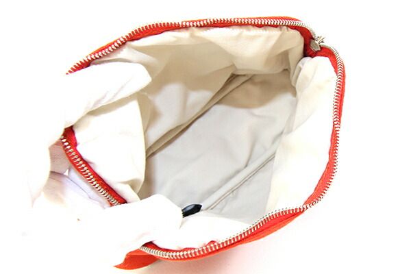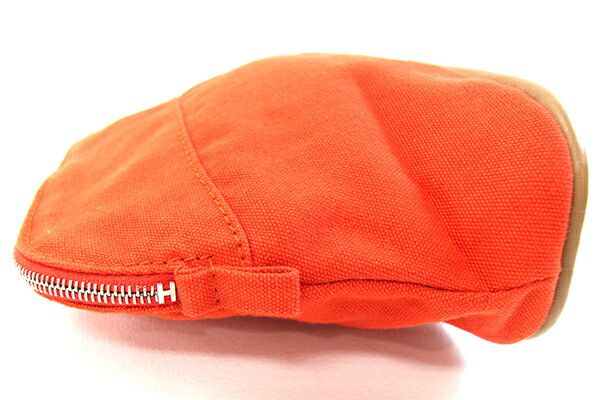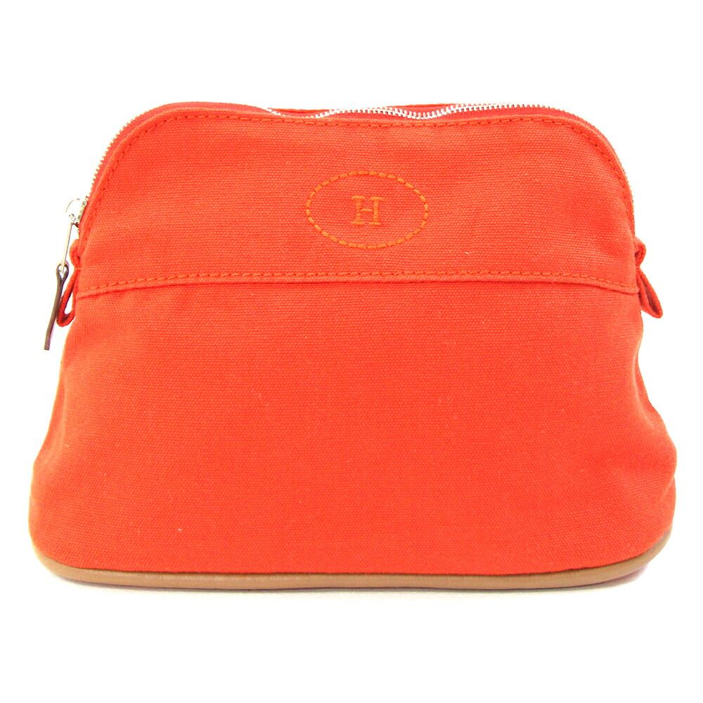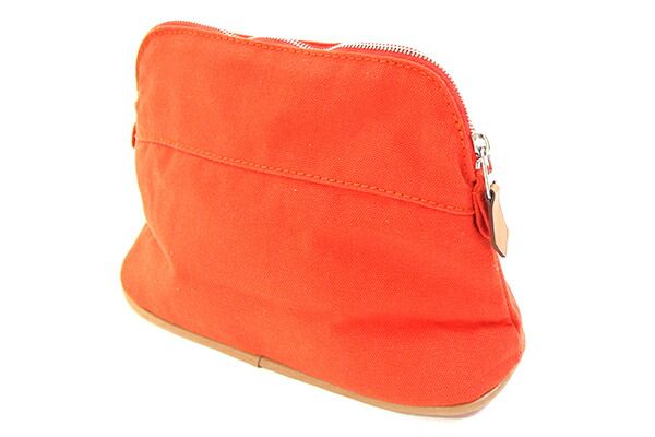 エルメスポーチボリードポーチレッドオレンジコットンキャンバスレザー中古Hロゴ半月型コスメマルチ化粧品レディースHERMES