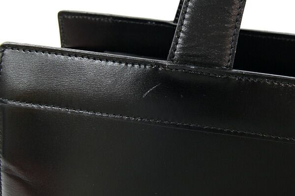 状態:外側:所々小キズ・薄スレ・シワあり。角にもスレ、ハンドルにシワ多数あり、付け根に色落ちあり、片側への倒れ癖強くあり。内側:スレ、薄汚れあり。金具:小キズ・スレ・クスミ・マグネット金具に色落ちあり。
