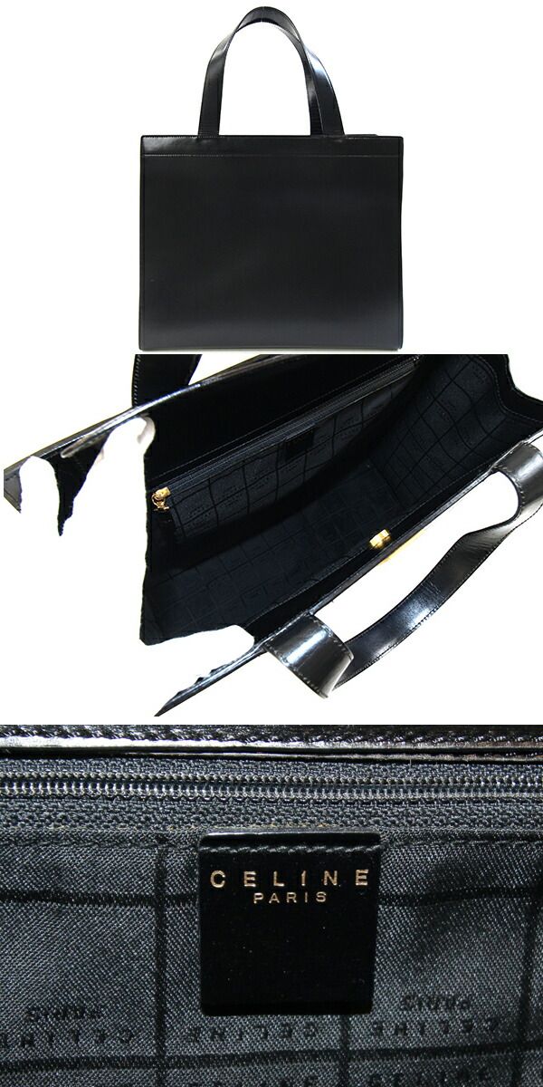 セリーヌトートバッグブラックゴールド金具レザー中古ハンドトート肩掛けロゴヴィンテージオールドレディース女性CELINE