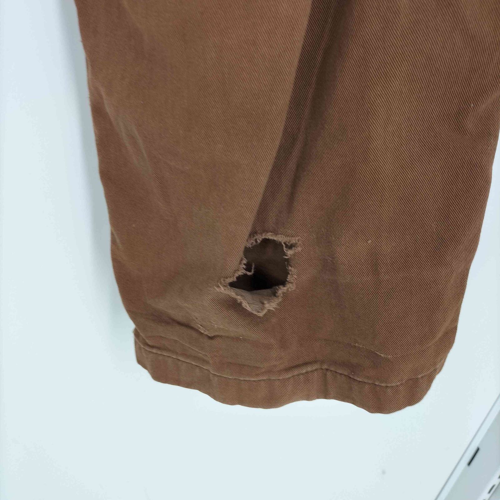 【状態詳細】膝、バックポケット付近に色褪せ、裾に破れ、全体的に毛羽立ち、使用感がございます。