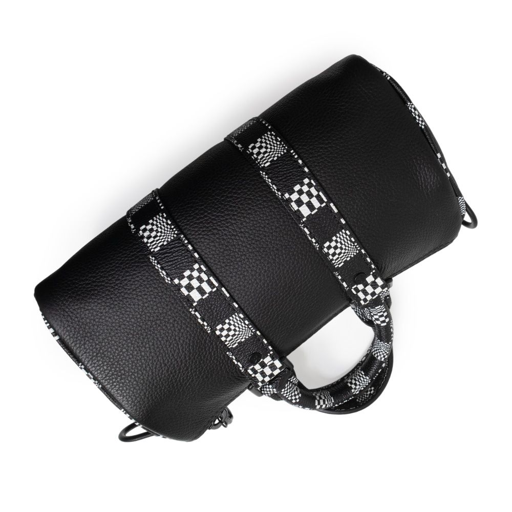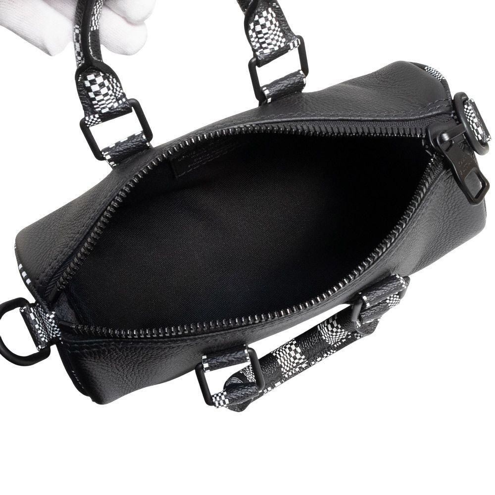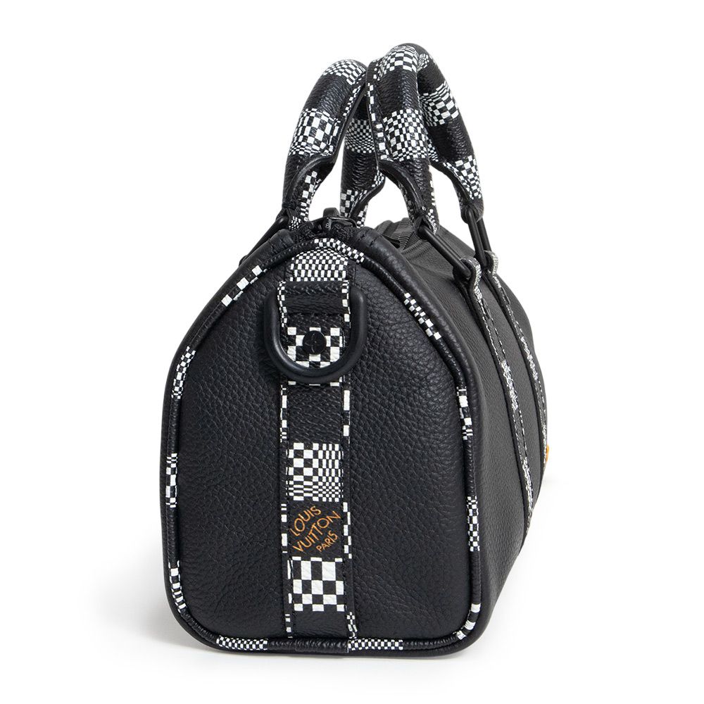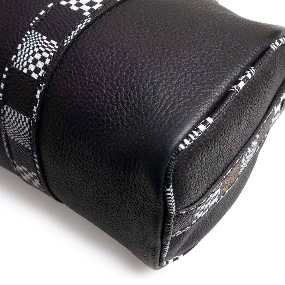 【商品紹介】1930年に発表されたクラシカルなソフトトラベルバッグ「キーポル」を、ヴァージル・アブローがコンパクトに再解釈した「シティ・キーポル」。ブラックのグレインレザー、ボディバンド、2本のトップハンドル、取外し可能なダミエ・ディストーテッド キャンバス製のストラップを添えられています。サフランオレンジのLV イニシャルが個性を放ちます。