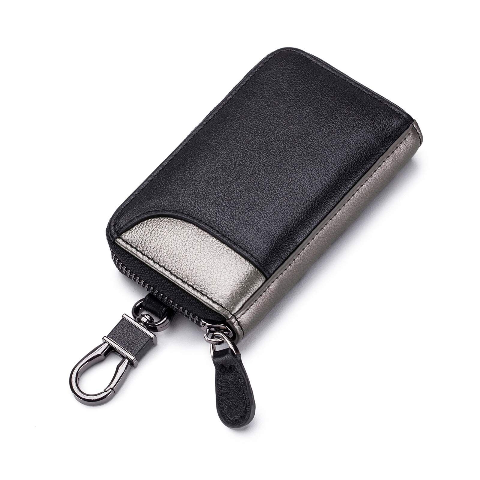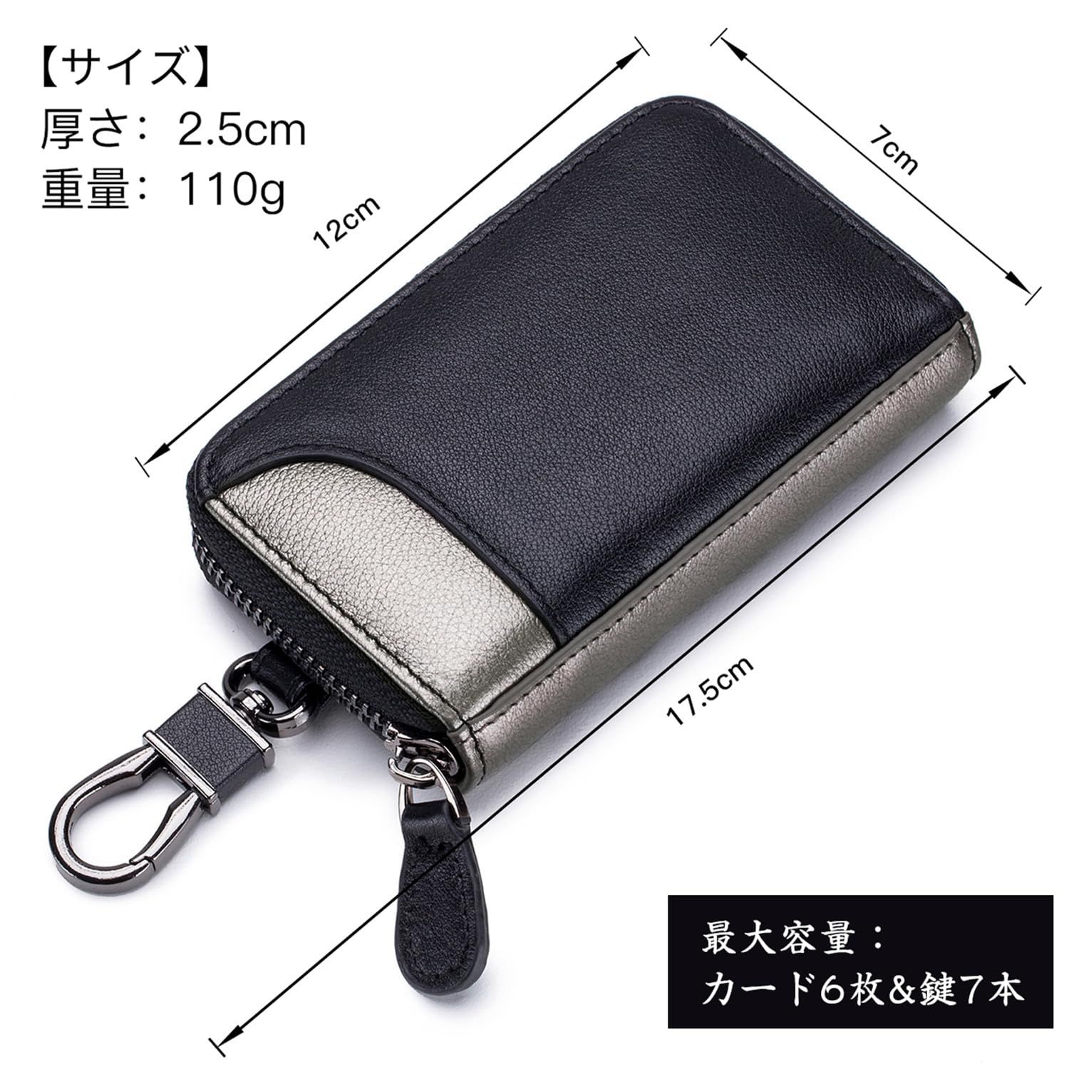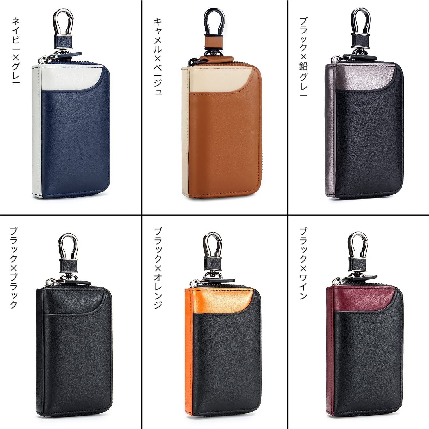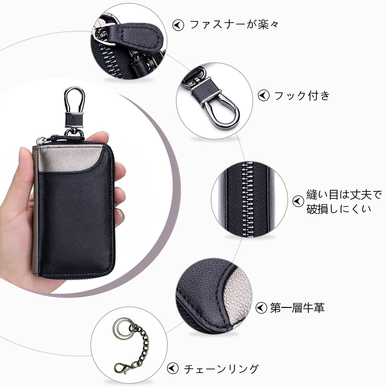[MBOYU] キーケース メンズ 本革 2つ外側ポケット カード収納 スマートキーケース 車 6連 カード 免許証 定期入れ 大きめ カラビナ おしゃれ ジッパー たくさん入る 丈夫 便利 プレゼント