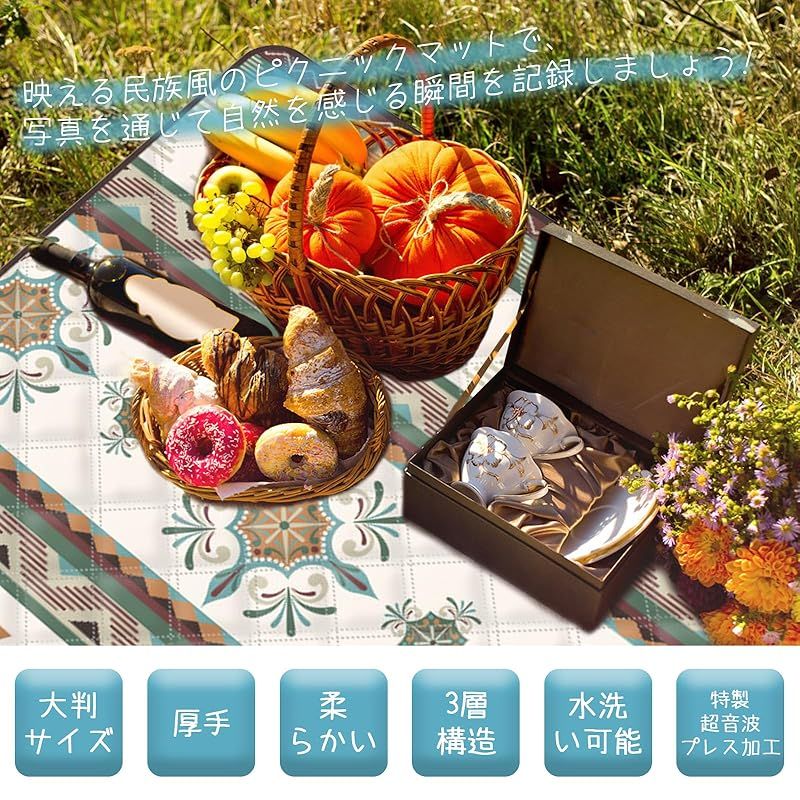 商品名:★注目商品★Fenghome ピクニックマット レジャーシート 軽量 200x200cm 撥水 防湿 大判 4人?6人用 テントマット プレイマット ラグ キャンプマット 折り畳みやすい コンパクト収納 (ブルネイ)