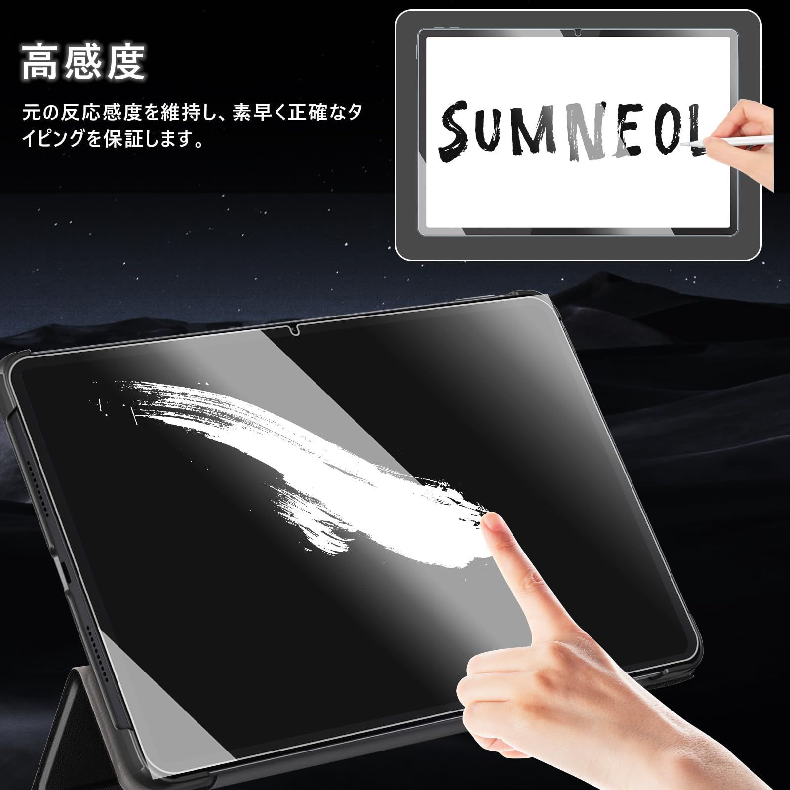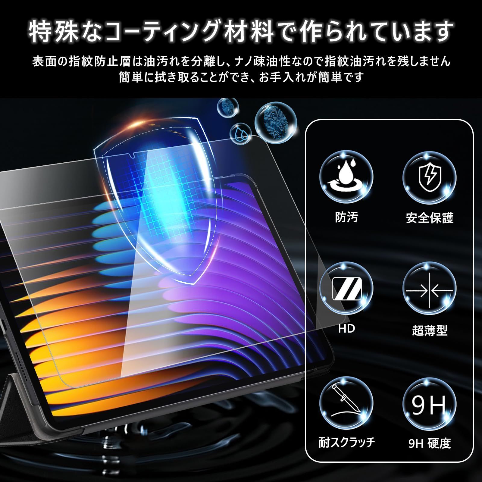 [指紋防止] 保護フィルムには特殊コーティングが施されており、防水・防油・指紋防止効果があります。日常生活で、飲み物、化粧品、油などで汚れても、サッと拭き取るだけで元の状態に戻り、画面を清潔に保ちます。タブレットを長時間使用しても、爽快で滑らかな手触りを維持できます。