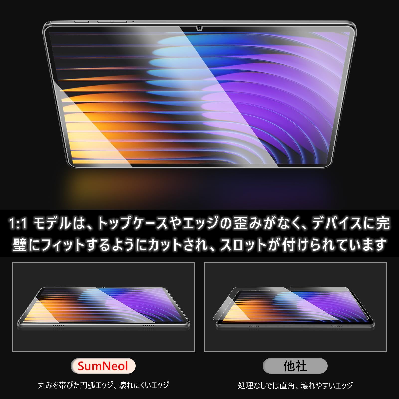 SumNeol【2枚セット】保護フィルム Xiaomi(シャオミ) Pad 7 Pro 11.2インチ 用 ガラスフィルム 9H硬度 高透過率 指紋防止 気泡防止 耐衝撃 撥水撥油 ゼロ気泡 全面保護 Xiaomi(シャオミ) Pad 7 Pro 11.2インチ 対応 強化ガラス