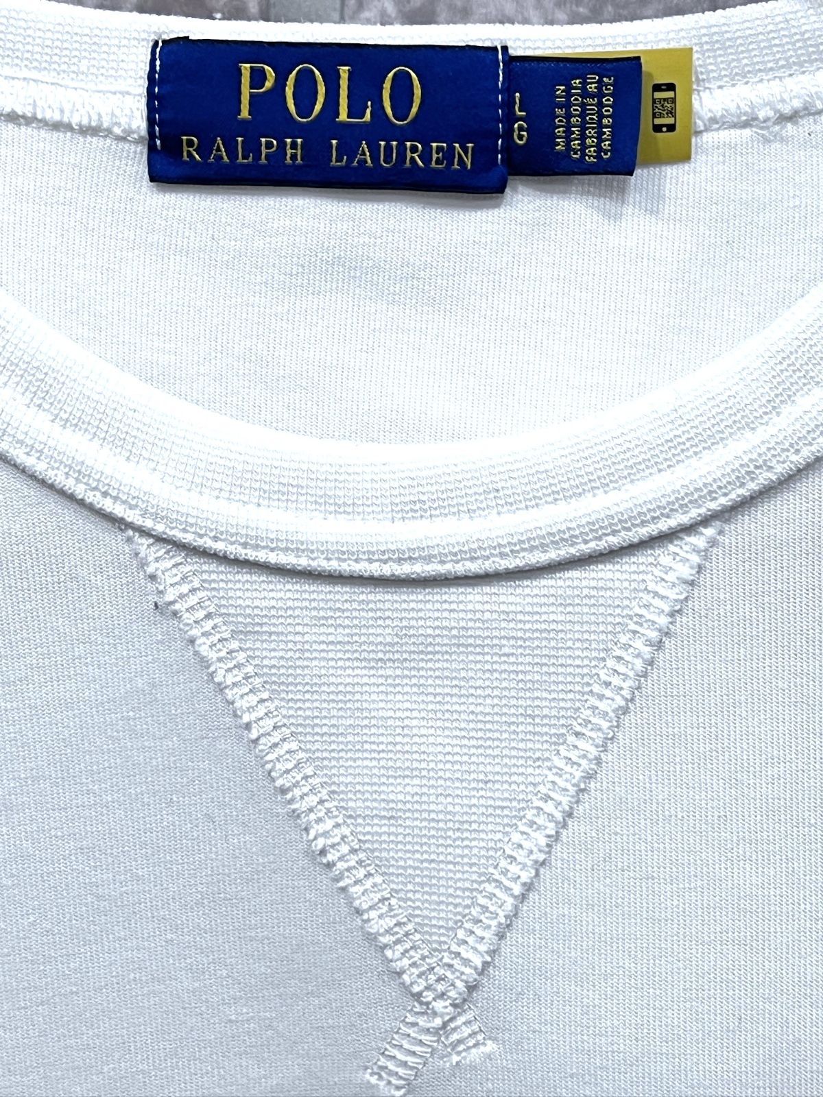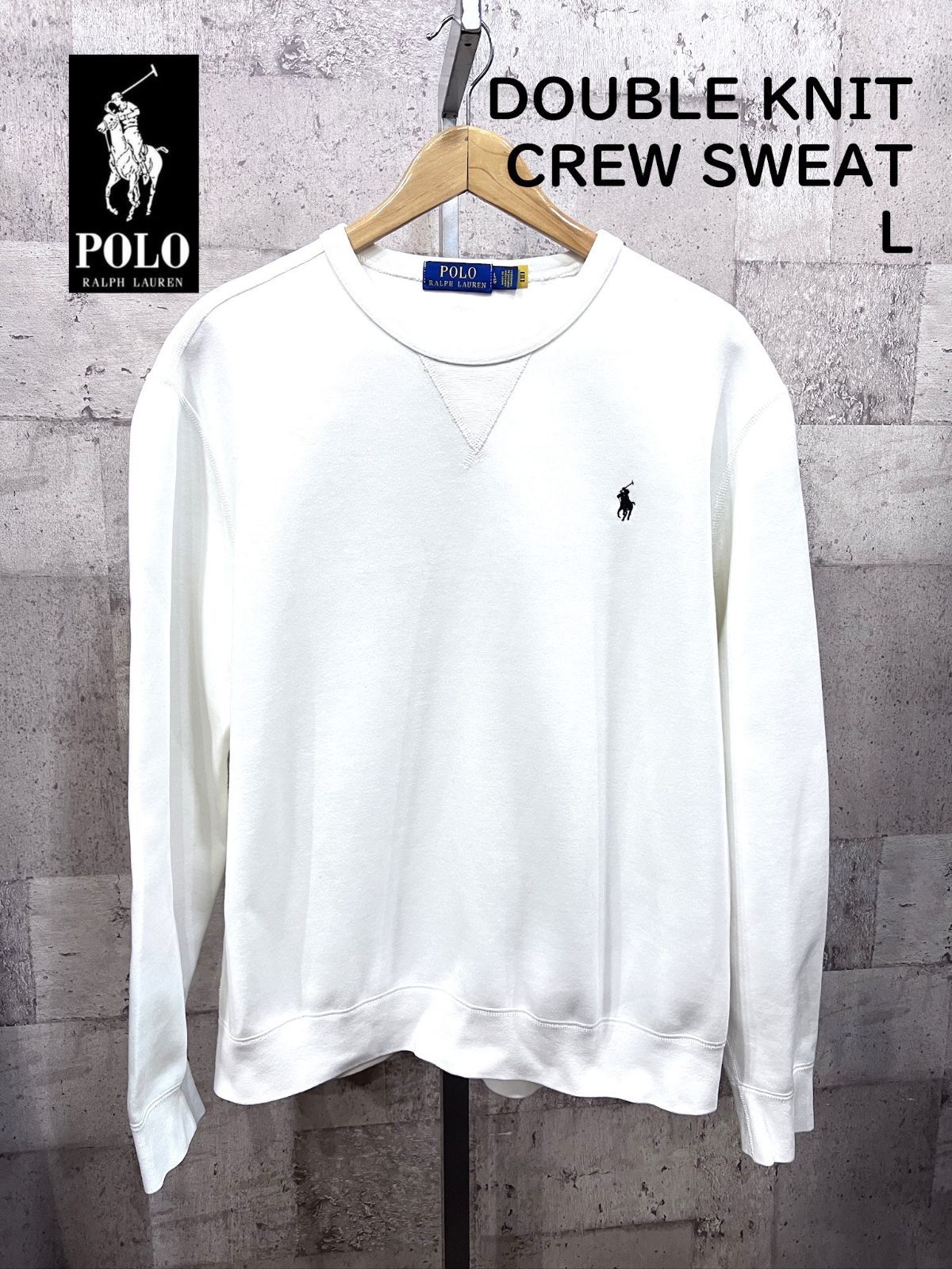 美品 ポロラルフローレン 正規品 ダブルニット クルーネック スウェット L メンズ POLO RALPHLAUREH ホワイト ポニー ワンポイント