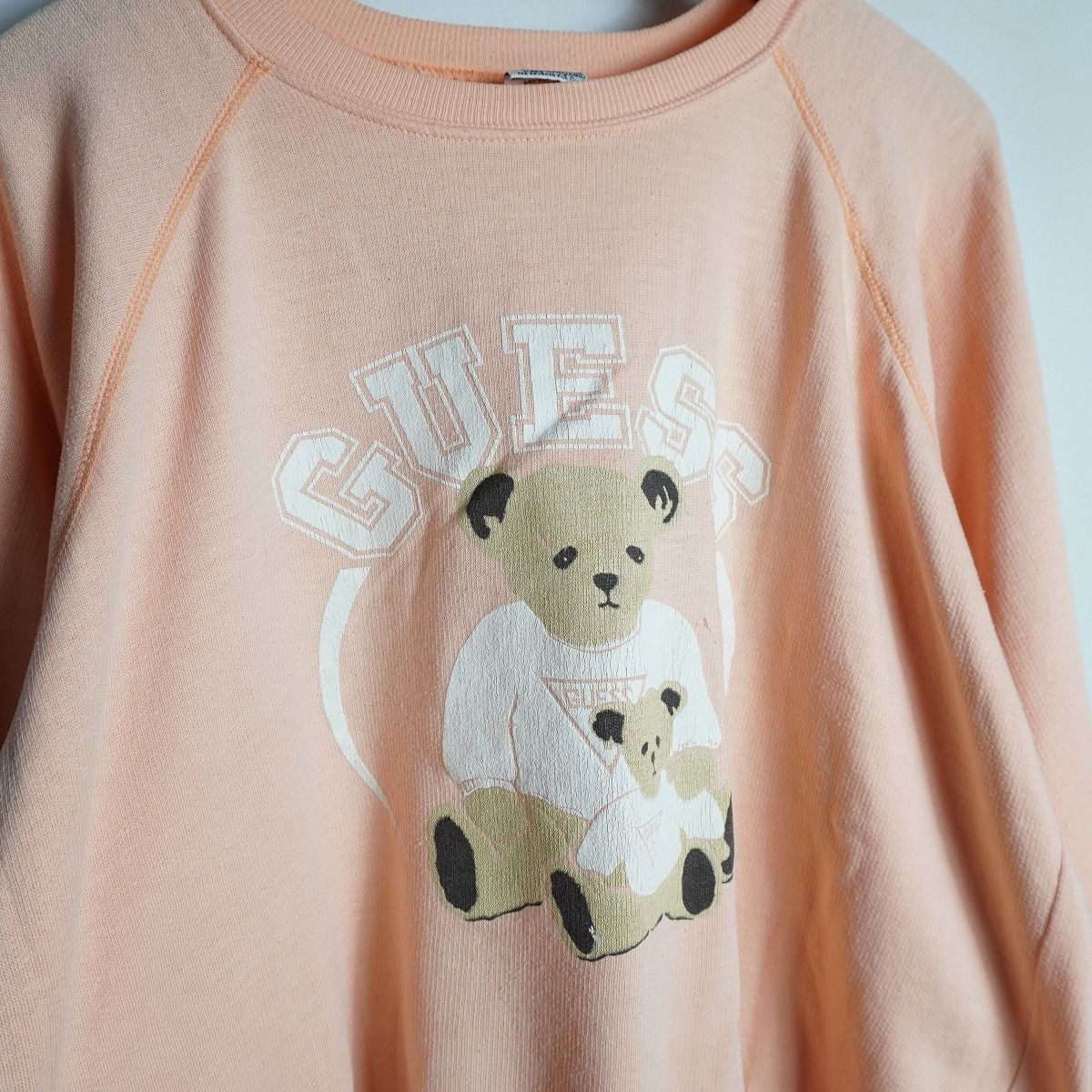 80s 90s Vinatge USA製 Guess ゲス ラグラン ベア プリント クルーネック スウェット シャツ トレーナー 長袖 アメリカ製 ピンク Mです。
