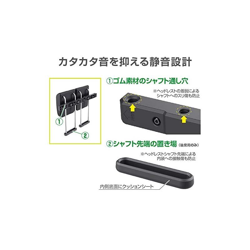 ヘッドレストシャフトによる内装への干渉傷を防ぎ、カタカタ音を軽減するスタンドが付属。