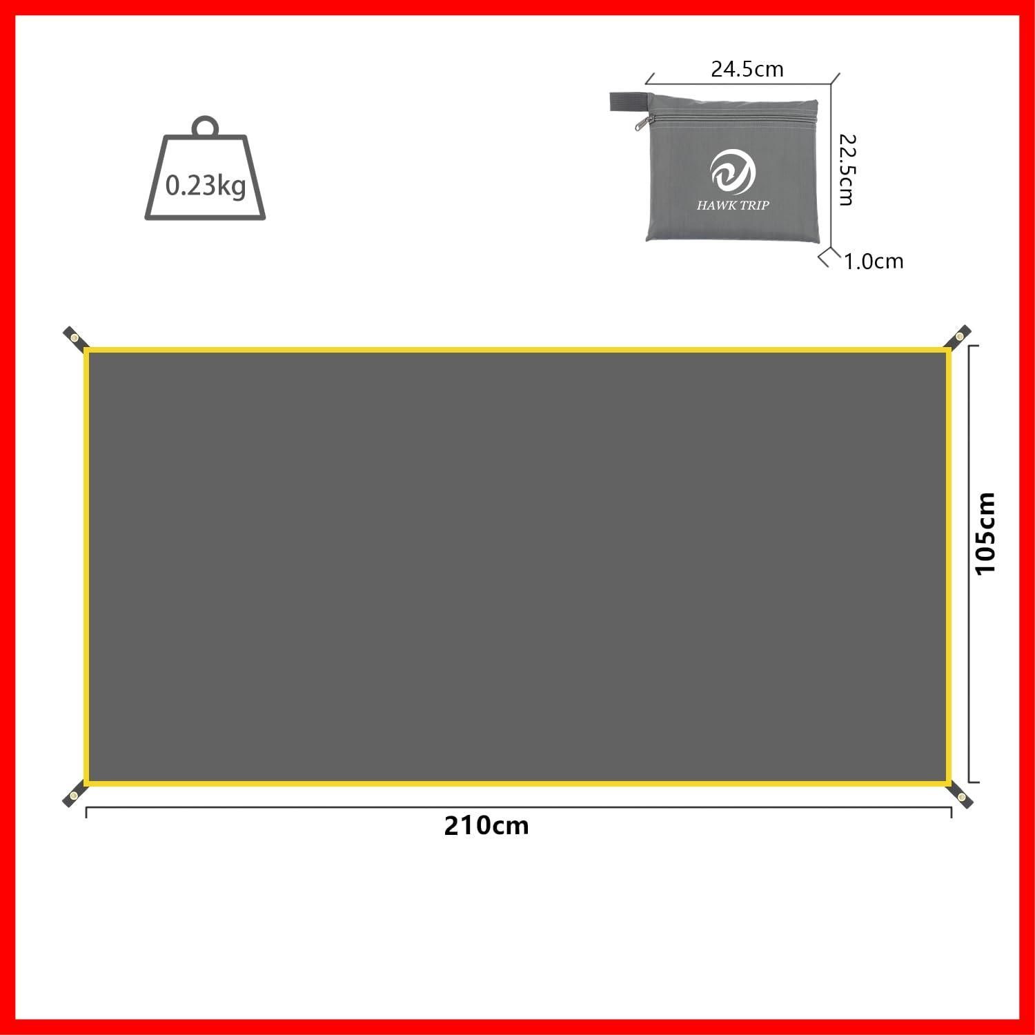 テントシート グランドシート 防水シート 軽量 収納バッグ付き アウトドア キャンプ 登山 ピクニックハイキング (グレー, 105x210cm)