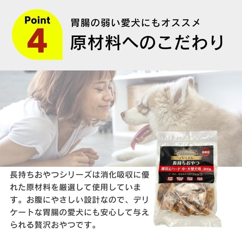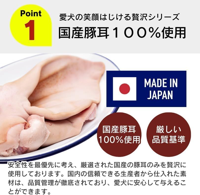 豚耳の根元部分を使用することで、適度な硬さと噛みごたえを実現し、愛犬の歯のケアにも役立ちます。