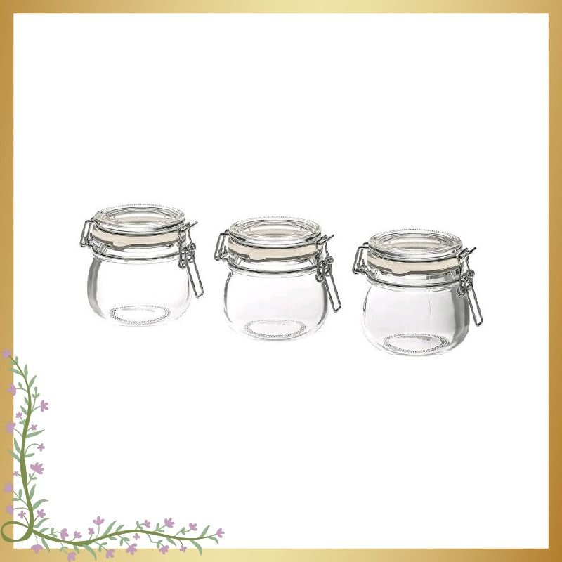商品名:IKEA (イケア) KORKEN ふた付き容器 クリアガラス 3ピースセット 可愛らしい手のひらサイズ