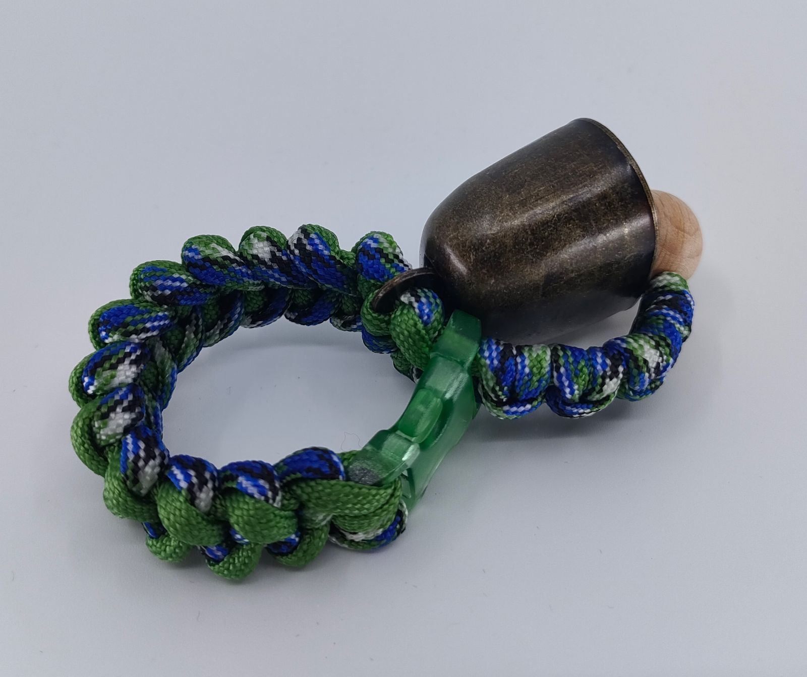 消音はウッドビーズをベルの中に入れ込むことで、強力なネオジム磁石が吊り鐘に吸い付いて行われます。クリック感があり手元を見ずにオン・オフをしっかり切り替えることが可能です。薄手ならグローブをしたままでもクリック感を感じらると思います。