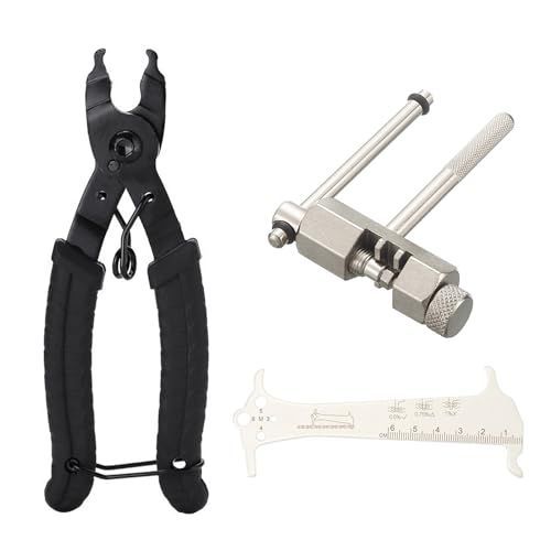 【セット内容】ミッシングリンク 工具x1個 、チェーンカッターx1個、 チェーンチェッカーx1個、数量:3個セット、重量:約348g。