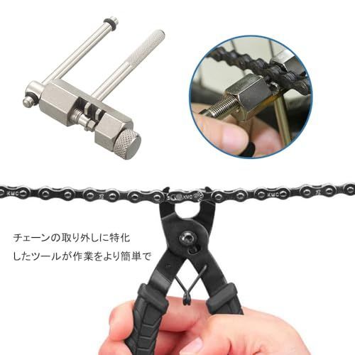 【チェーンカッター】6-11速度ですがの自転車チェーンにしか適し、ほとんどの自転車に使用可能です。チェーンカッターは高品質な金属素材を使用しており、チェーンをスムーズにカットできます。メンテナンス作業をより効率的で便利にします。