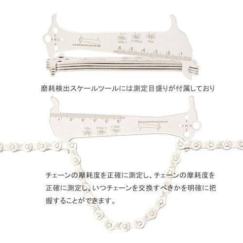 【磨耗検出尺】磨耗検出スケールツールには0.75%と1%の2つの測定目盛りが付属しており、チェーンの摩耗度を正確に測定し、いつチェーンを交換すべきかを明確に把握することができます。