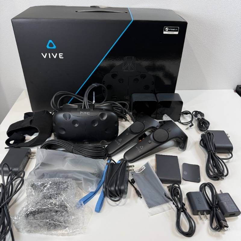 HTCのVRゴーグル、VIVE(初期型 2016年モデル)の出品です。PCVRの歴史を築いた名機であり、現在も多くのVRコンテンツを楽しむことが可能です。