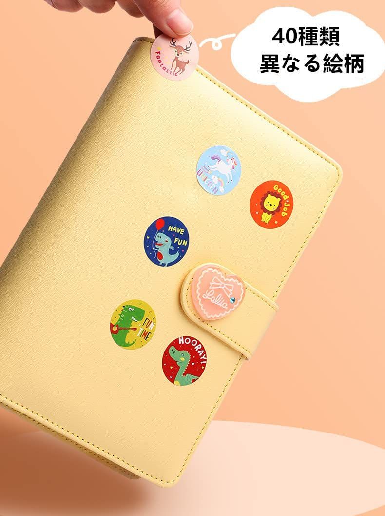【ごほうびシール - 豊富な絵柄】40種類の美しいデザインで楽しくお使いいただけます。丸型カットで貼りやすく剥がしやすいため、小さなお子様の指でも簡単に扱えます。