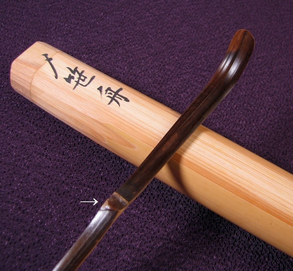 茶杓の矢印部分に小ホツレがあります。その他は概ね良好です。
